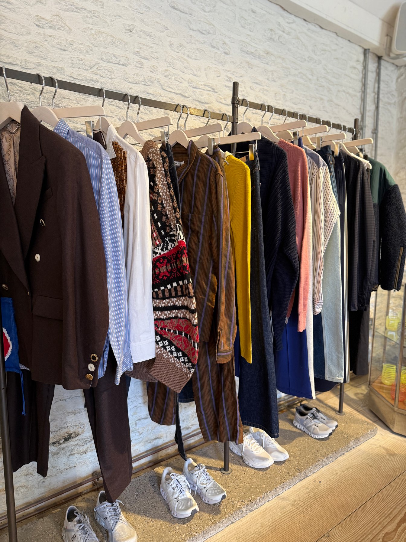 「The Store X」は、「ウェールズ ボナー(Wales Bonner)」「エス エス デイリー(S.S.DALEY)」「テムズ MMXX.(Thames MMXX.)」「アレックス・イーグル(ALEX EAGLE)」「マーティン・ローズ(MARTINE ROSE)」「チャールズ ジェフリー ラバーボーイ(Charles Jeffrey Loverboy)」といった気鋭UKブランドを扱う通なお店。会員の中にはファッションデザイナーもいるそうで、さすがクリエイティブに通じる人たちのコミュニティだけあります。ちなみに筆者は「テムズ MMXX.」のセーラー風ジャケットをゲット。