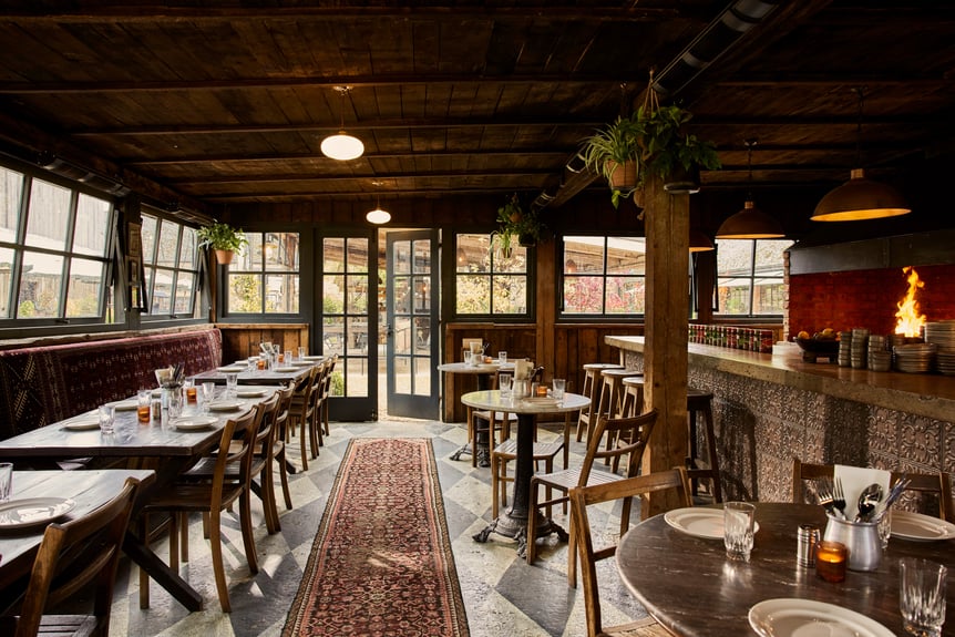 "単なる宿泊施設ではなく、暮らすように滞在するための場所"という発想のもと、田園風景と調和する18世紀の建築を再生させたメインの建物棟がビレッジの中心に位置します。中にはローカルフードを楽しめるダイニング「Main Barn」、ペルシャ料理を提供する「Little Berenjak」、日本料理を軸としたアジアンフュージョンが楽しめる「Pen Yen」といった3つのレストランをはじめ、ソーホーハウスのオリジナルカクテルを振る舞うパブ「Mill Room」、焼きたてのベーカリーを楽しめるカフェ「Blake’s Kitchen Bakery」が併設。多国籍な食体験が施設内で楽しめます。