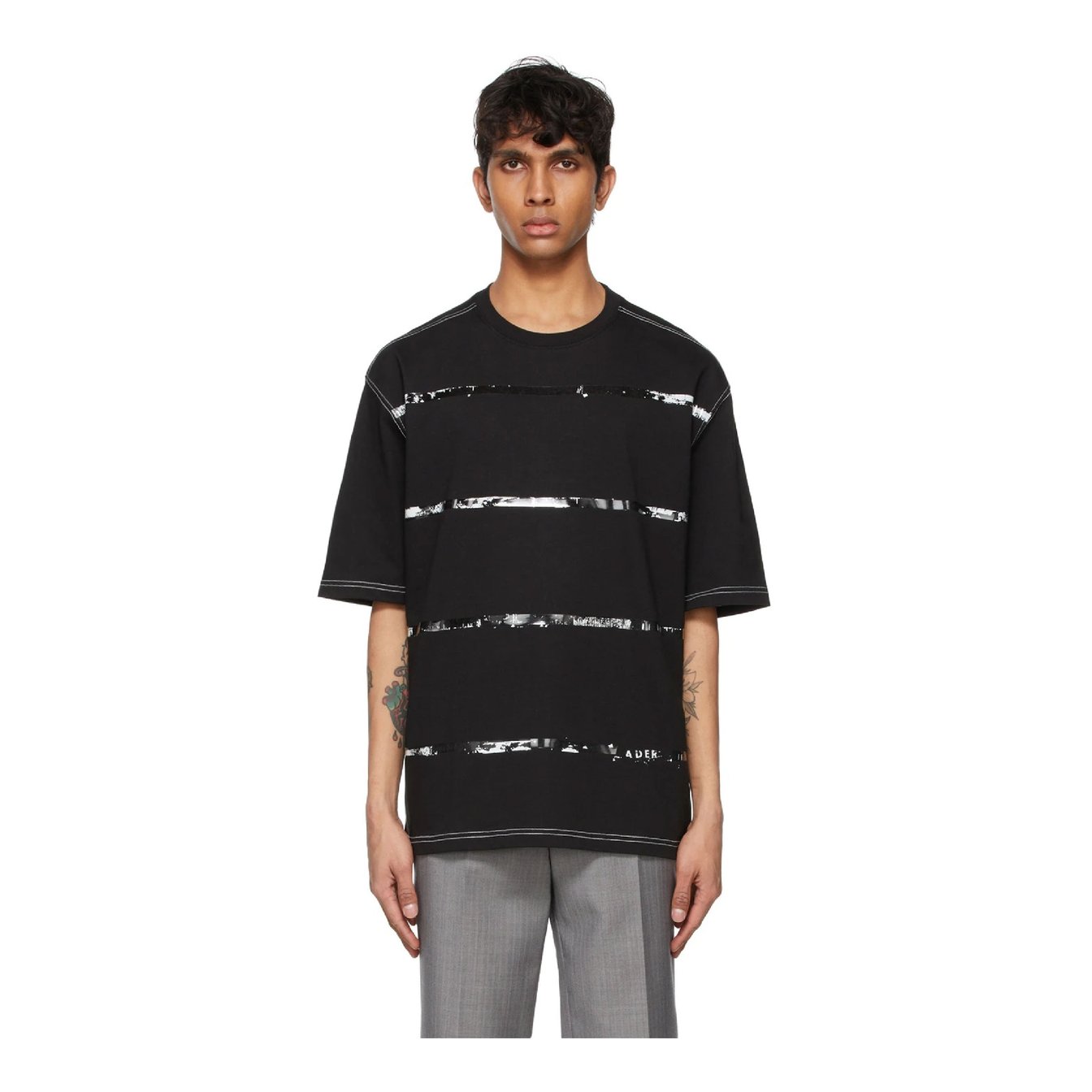 最後にご紹介するのは、「アーダーエラー」のグラフィックが光るブラックTシャツ。デザインとして主流なロゴやボーダーとは違う、個性的なデザインで周りと差を付けられる一着。コントラストステッチやバックのほつれた刺繍など、シンプルながらデザインに遊びを効かせた主役級のTシャツです。