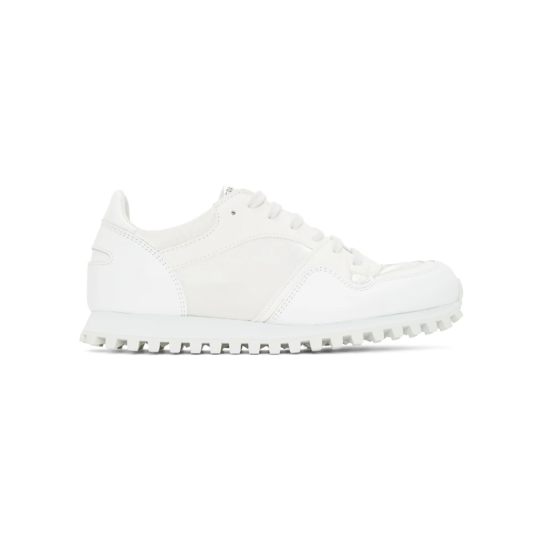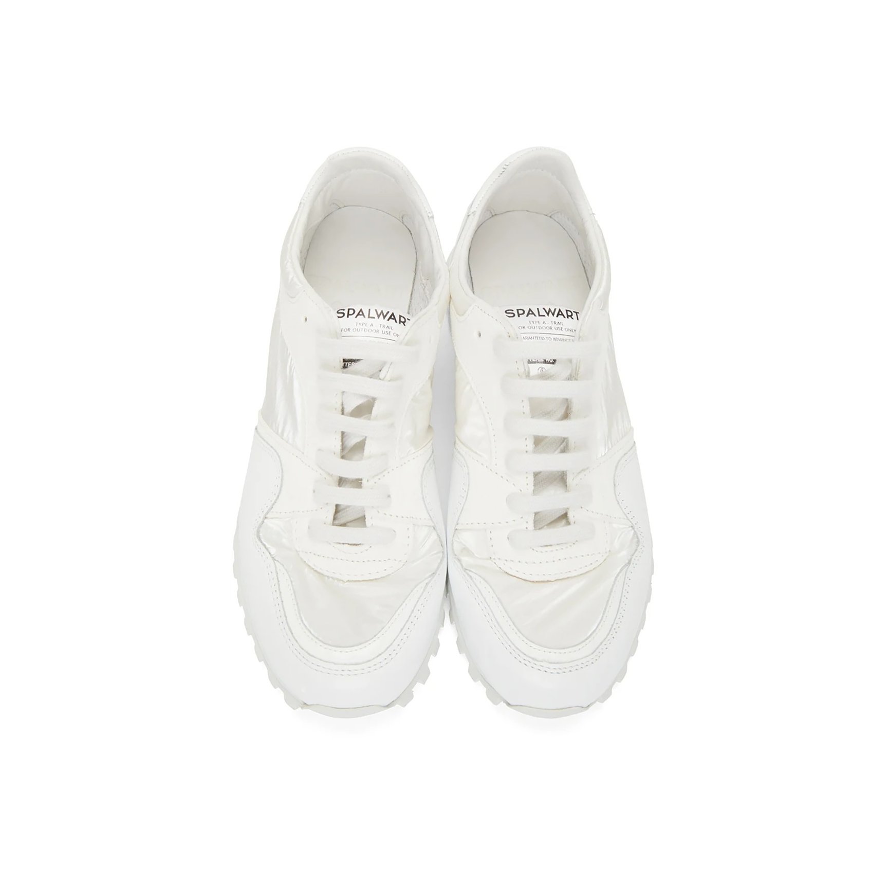 ホワイトワントーンだからこそ、異素材MIXが生み出す素材感を楽しみましょう。「スパルウォート(Spalwart)」白スニーカーは、カーフスキン、スエード、ナイロン、サテンと4種類の素材をパネル状に仕立てた一足。同ブランドおなじみの、凸凹としたアウトソールも健在です。