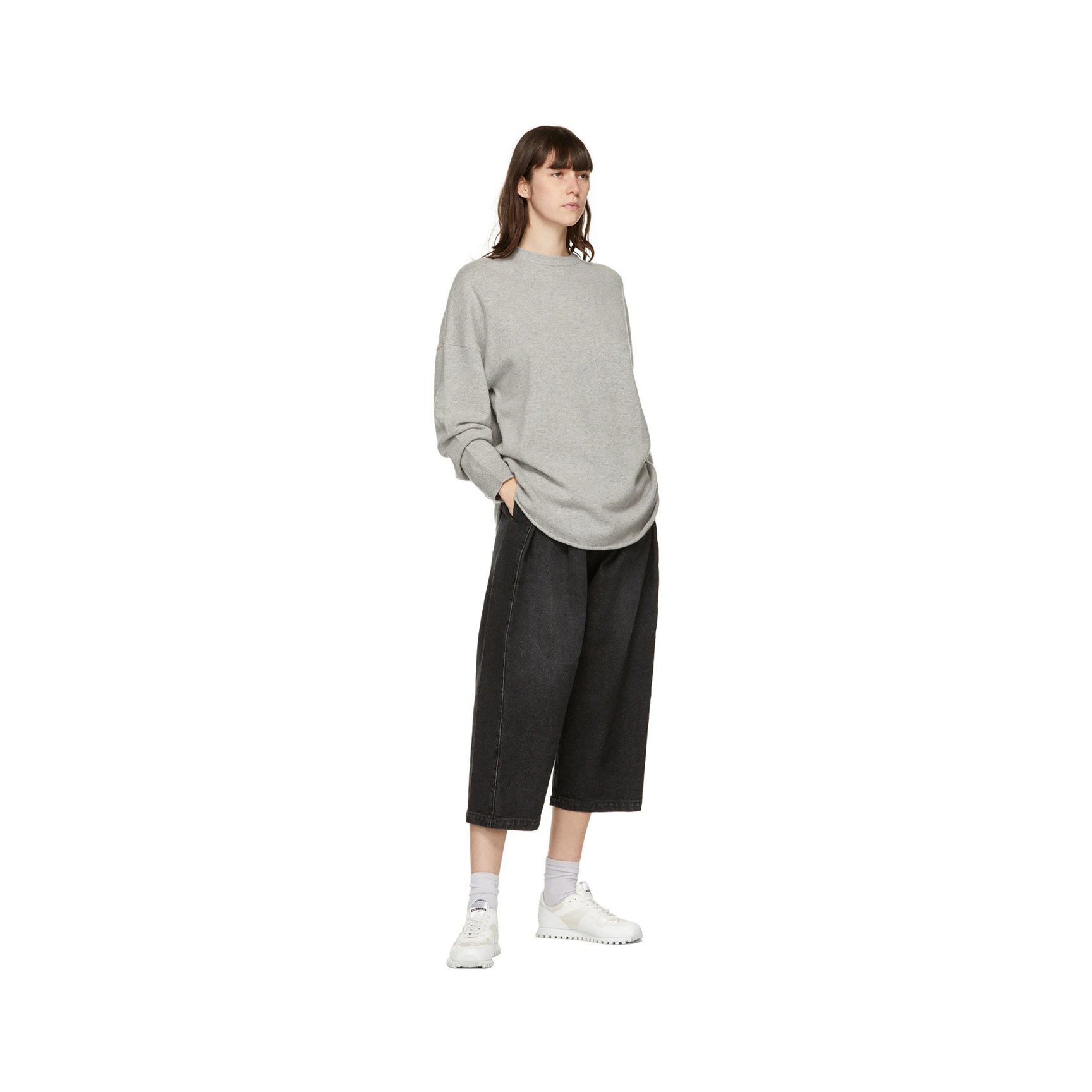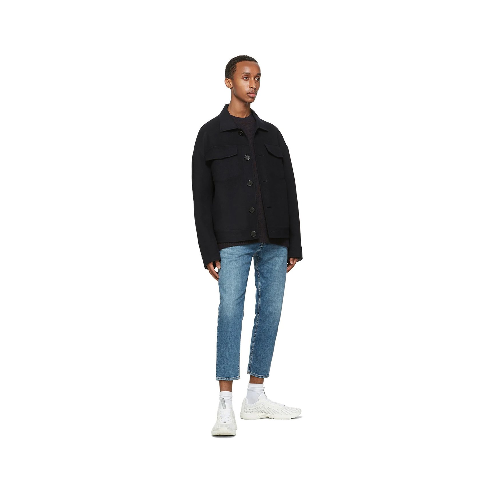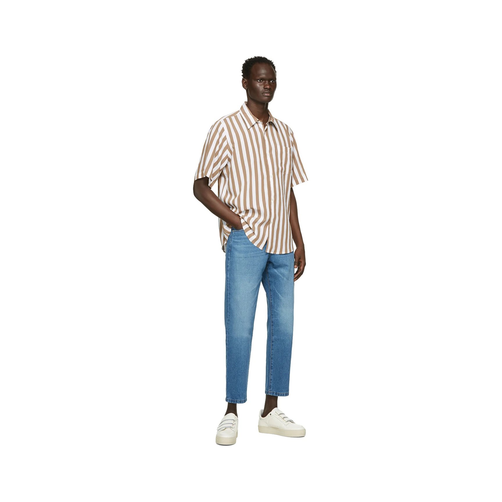今回取り上げる中で唯一のベルクロスニーカーは、「アミ アレクサンドル マテュッシ(ami alexandre mattiussi)」のもの。レザーの重厚感と、少しぽってりとしたフォルムが生み出すボリューム感は、クロップド丈のパンツと好相性です。