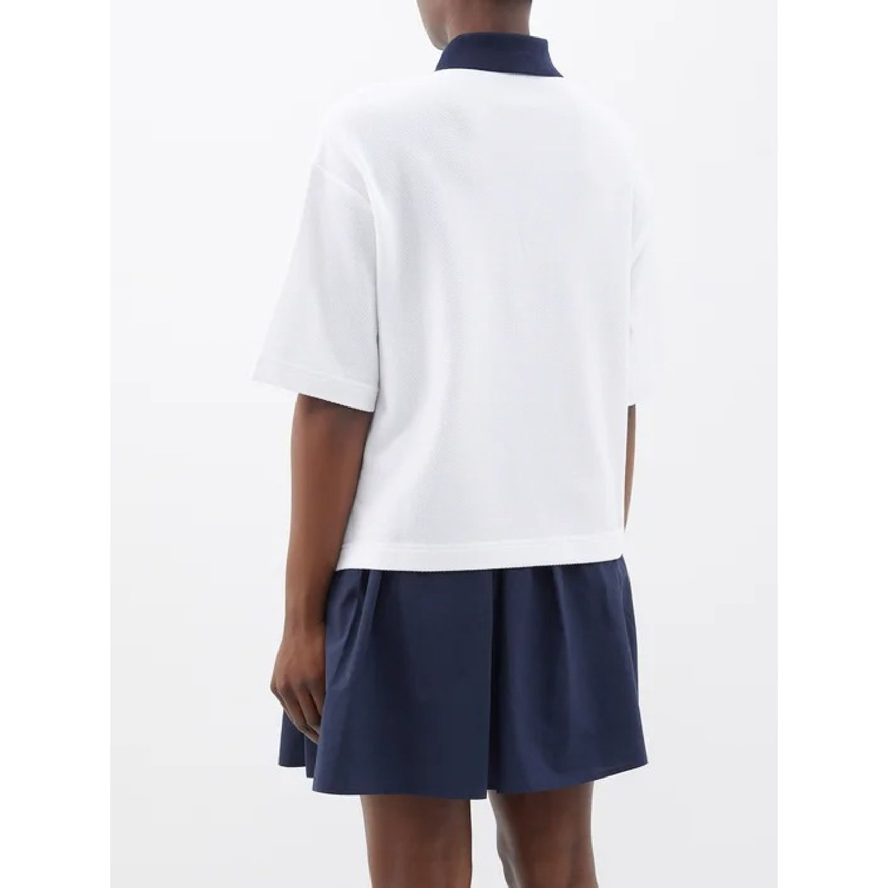 落ち着きのあるネイビーの襟とロゴでまとめた、「モンクレール(MONCLER)」のオーバーサイズポロシャツ。夏場のストレスを軽減する、通気性の良いコットンピケを採用したトップスで、快適さとおしゃれを両立させて。