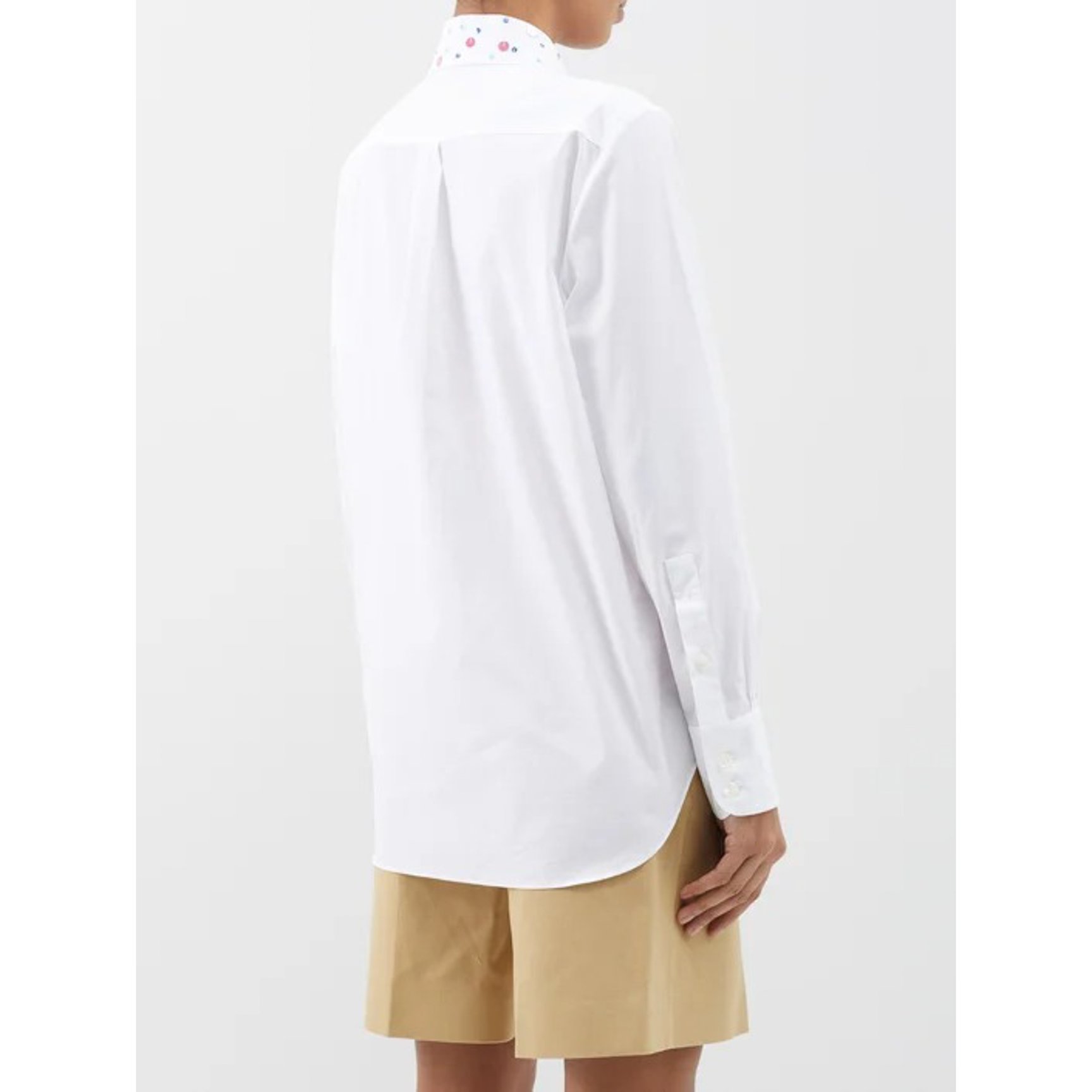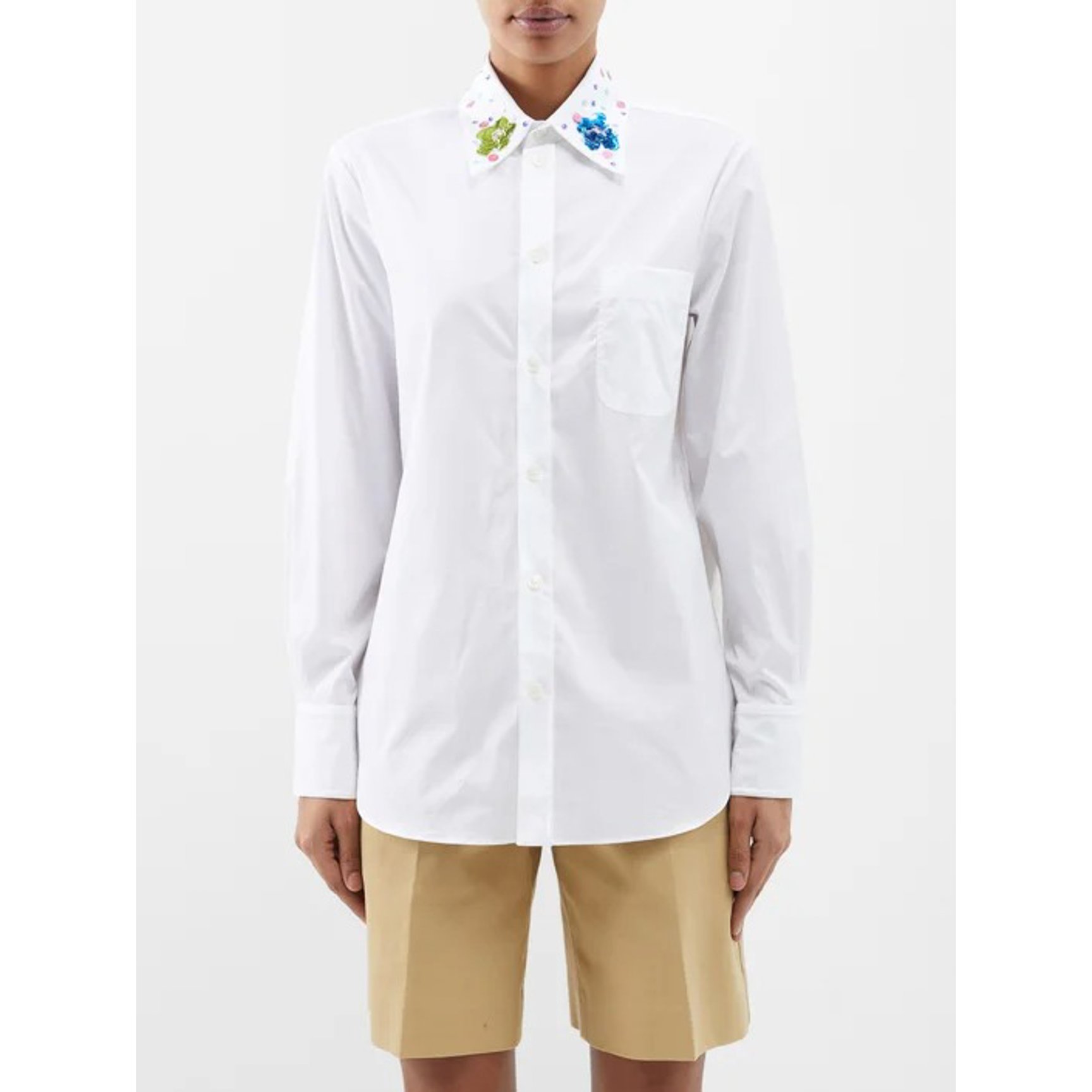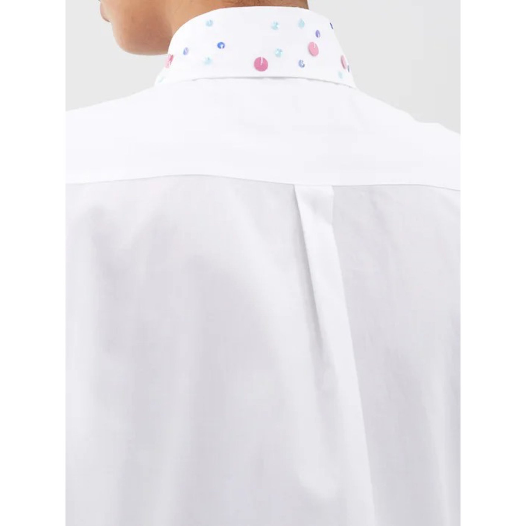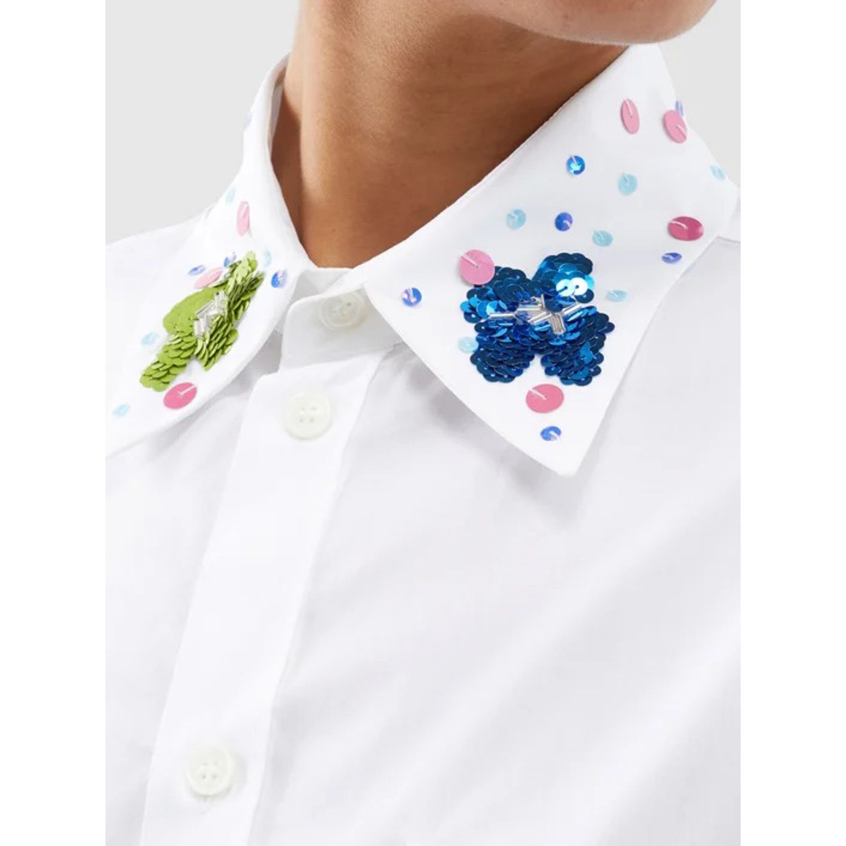 一目見ただけでクオリティの高さが伺える、「マルニ(MARNI)」のホワイトシャツ。ハリのあるボディに映える、色とりどりのスパンコールが散りばめられた、華やかな襟がアクセント。特別感のあるシャツは通年で楽しめます。