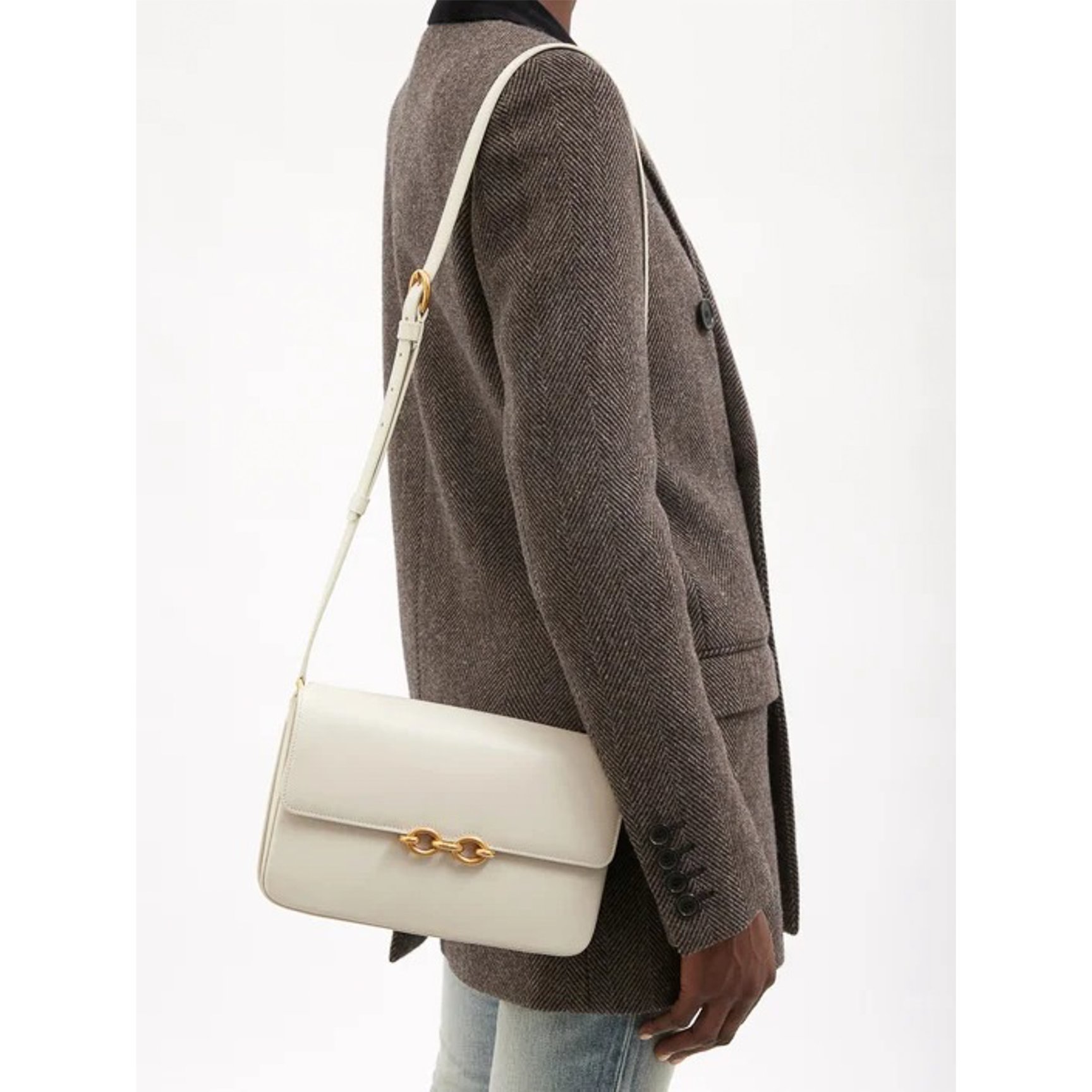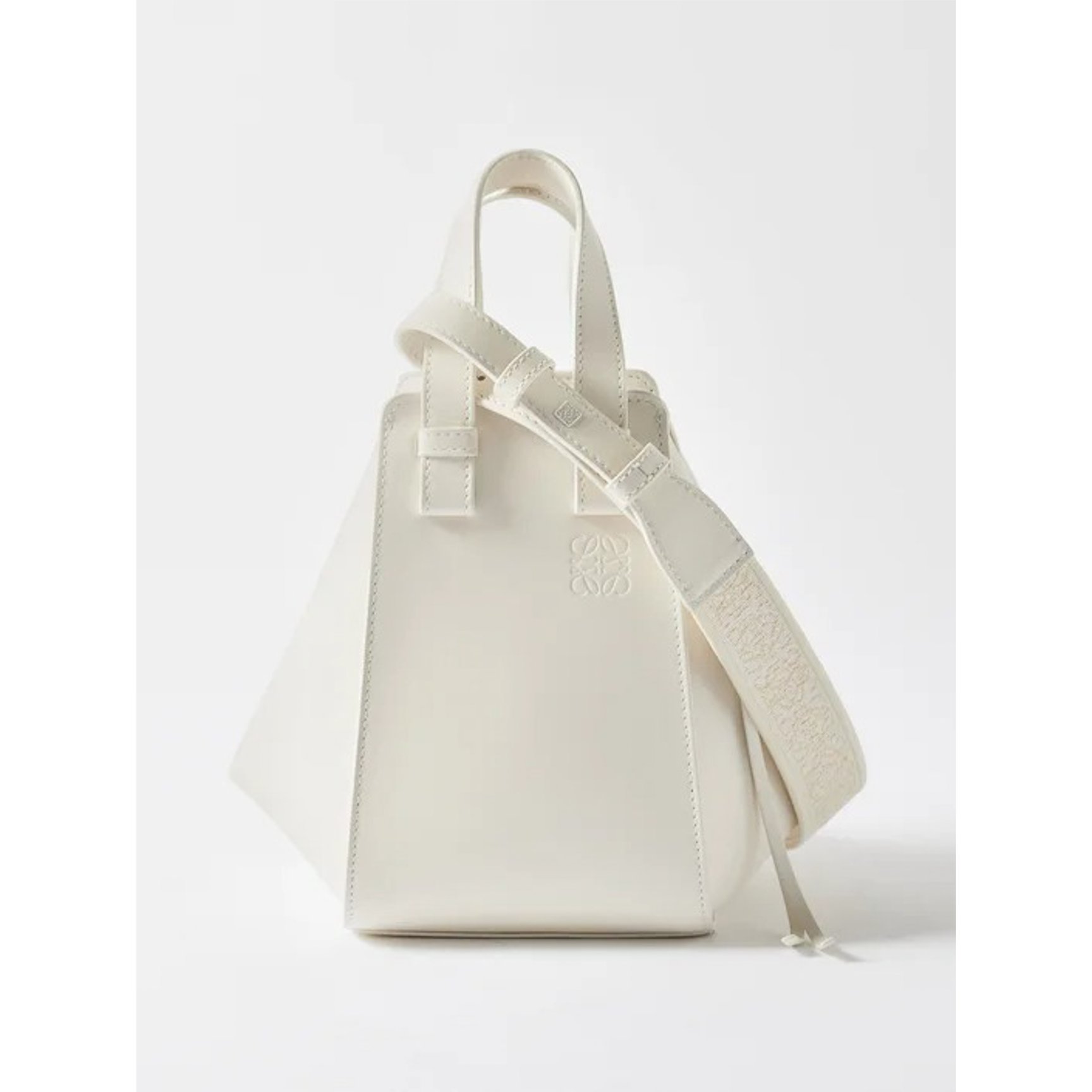 「ロエベ(LOEWE)」の人気バッグ「ハンモック」がオールホワイトに。ボディやショルダーストラップに施された型押しロゴがポイント。カジュアルにもフォーマルにも持てて、コーディネートを品よく仕立ててくれる優秀選手。