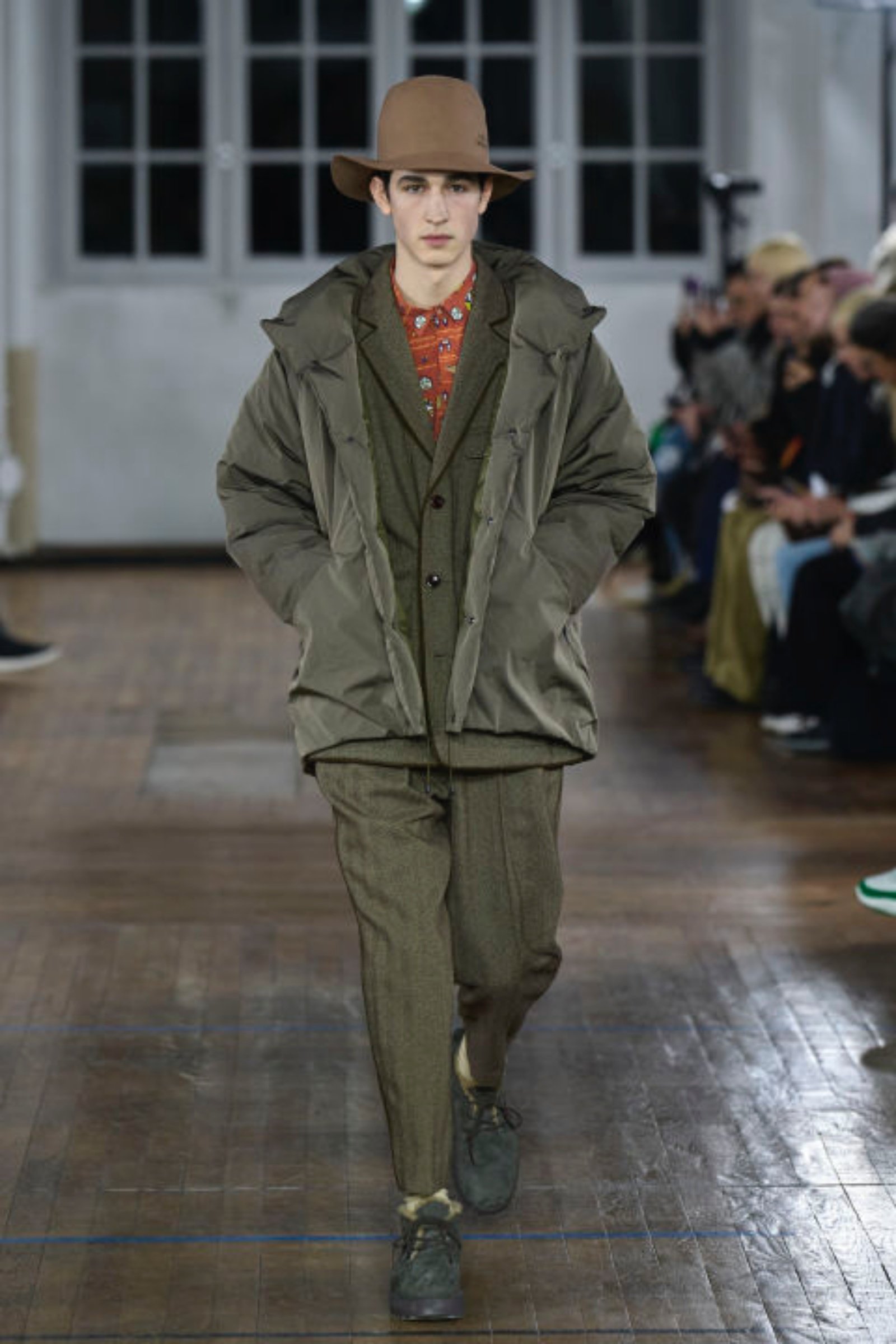 「自分自身でデザインを身につけ、多くの旅をしてきた中で感じたメンズウェアとしての品格や装い、オケージョンによる振る舞いなど、さまざまな要素を混ぜ合わせ現代的な男性像を作ることが求められていると感じた」と、「ホワイトマウンテニアリング」らしいアウトドアやスポーツといった要素を中核としつつ、程よい気品を漂わせるスタイリングを幅広く提案。