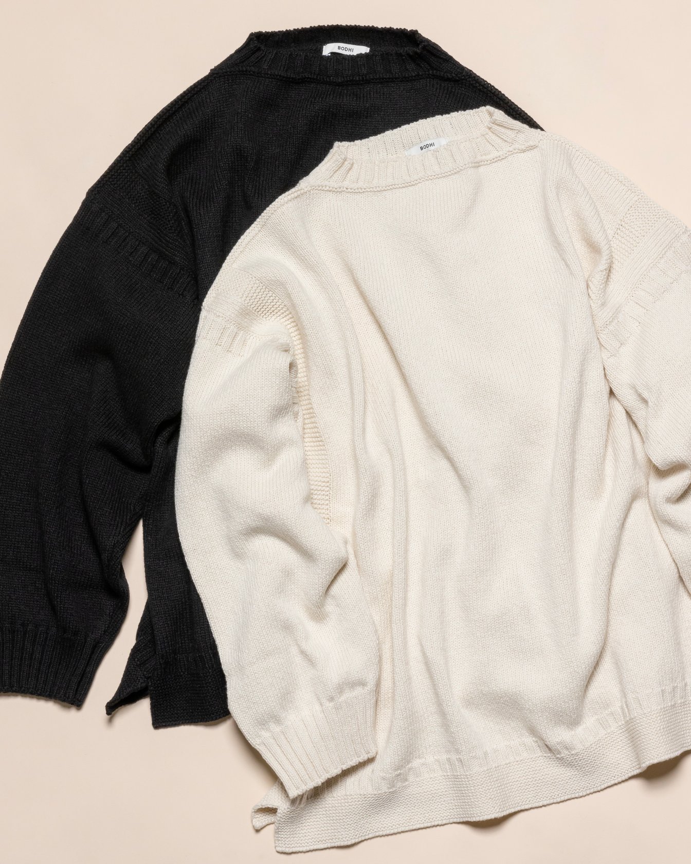 F/STOREのファーストシーズンから取り扱いをしているカシミヤニットブランド「ボーディ(BODHI)」。カシミヤ=冬という印象が強いだけに、SSではカシミヤをどう調理するんだろうという期待と不安があったが、このガンジーニットを見てそれは杞憂に終わった。