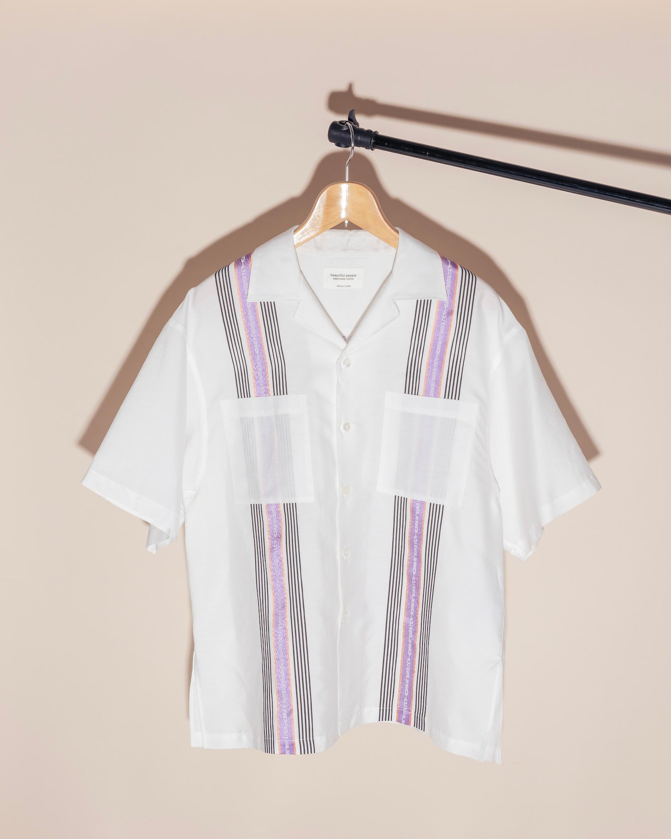 そこで見つけたのが、涼しさもあり今の季節に違和感なく着られそうな「ビューティフルピープル」のオープンカラーシャツ。伝統的なキューバシャツをインスピレーション源にしながらも、通常刺繍で表現されている身頃のディテールをキャッチーなカラーとロゴのテープに置き換えることで、古着などで売ってるキューバシャツとは違い"コテコテ感"がないのが良い。加えて、パターンに定評のあるブランドということもあり、野暮ったくならない程度のオーバーサイズシルエットと絶妙な袖丈のおかげで、大人が着るのに丁度良い塩梅の半袖シャツに昇華されている。本国キューバでは、キューバシャツを冠婚葬祭や公共の職員の制服など正装時の服として着るものだそうで、ベタくワークパンツと合わせようかなと思っていたが、あえて本場を見習って綺麗なスラックスと合わせてみようかと模索中だ。