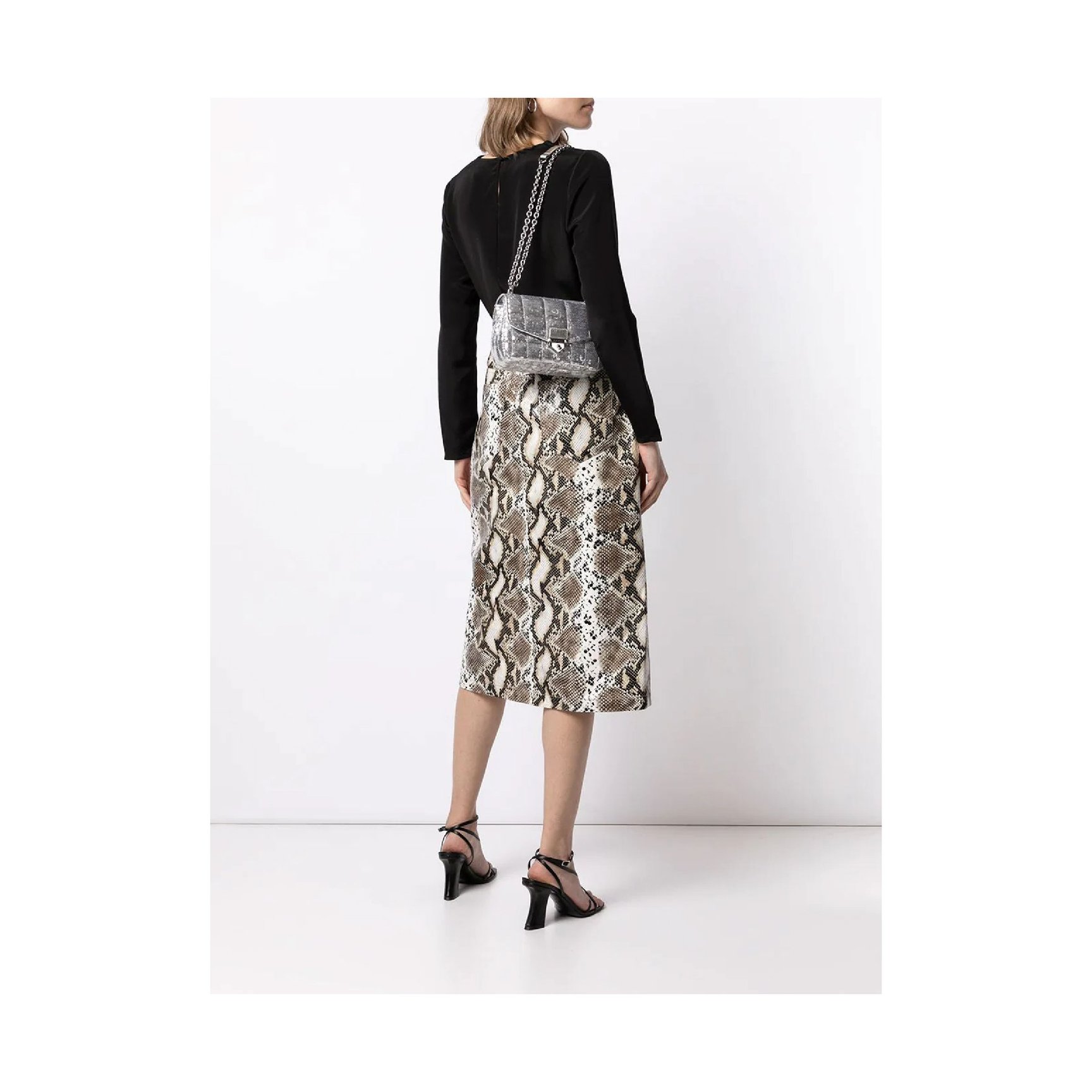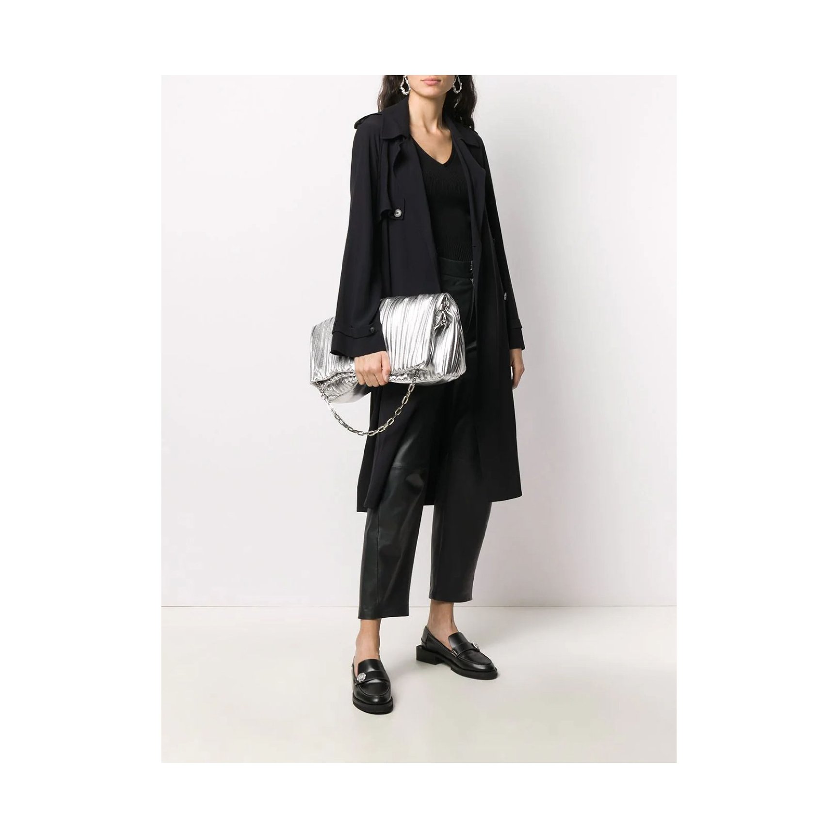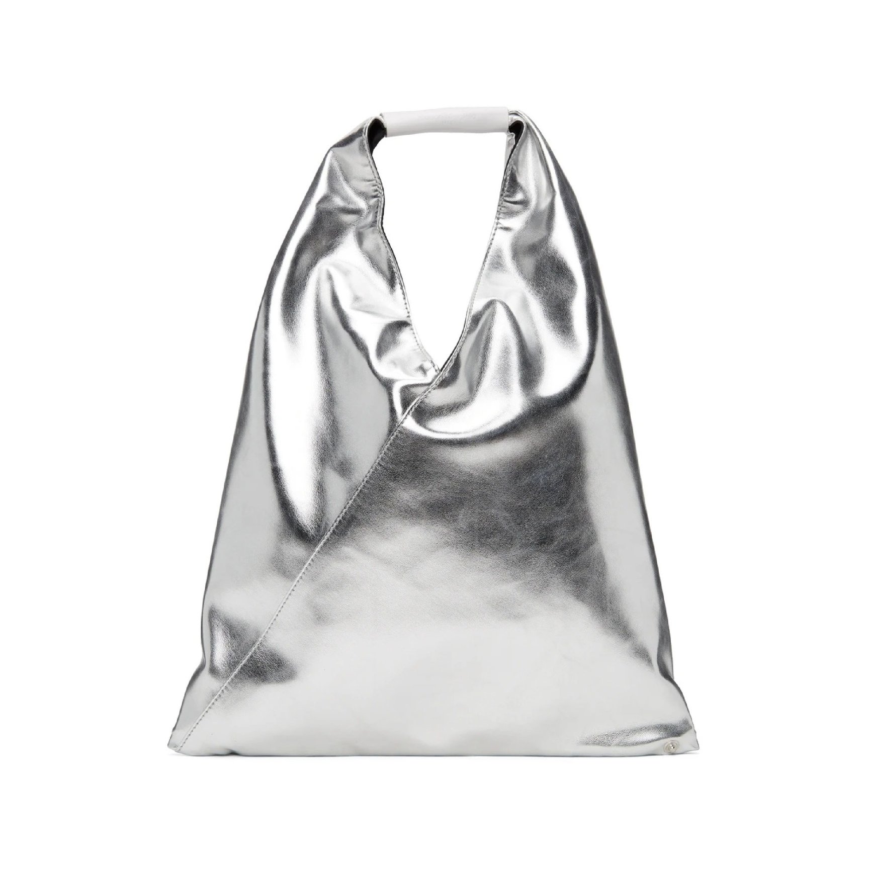 まず最初にご紹介するシルバーバッグは、「エムエム6 メゾン マルジェラ(MM6 Maison Margiela)」。メゾンがリリースしている人気シリーズ「ジャパニーズバッグ」は、ブラックをベースに様々な素材・カラーリングが展開されているアイコンバッグ。その中から、ひと際輝くシルバーをチョイス。モードなインスピレーションに心惹かれるメタリックバッグで、定番とは呼ばせない主役級の煌めきをまとってみては?