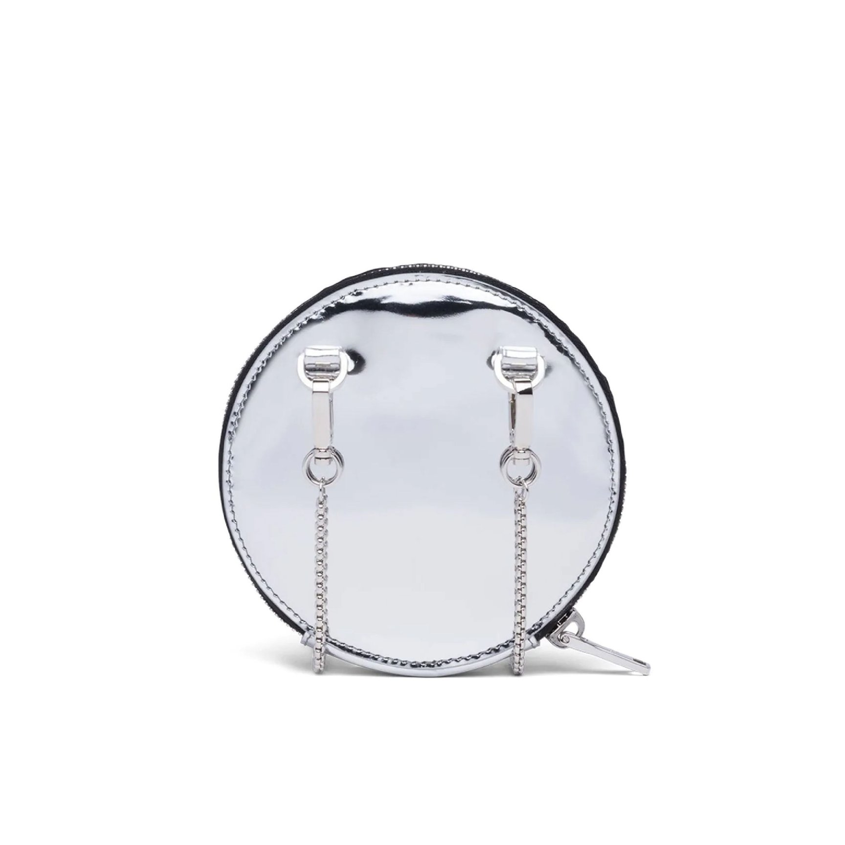 鏡のような滑らかなシルバーメタリックが眩しい、「プラダ(PRADA)」のミニバッグ。新しいブランドの魅力とスタイリングを提案する、直径12cmの小さなラウンドデザインが都会的な洗練さを漂わせます。華奢なチェーンをアクセサリー感覚で首から下げて、小粋なプライベートスタイルを楽しんでみては?