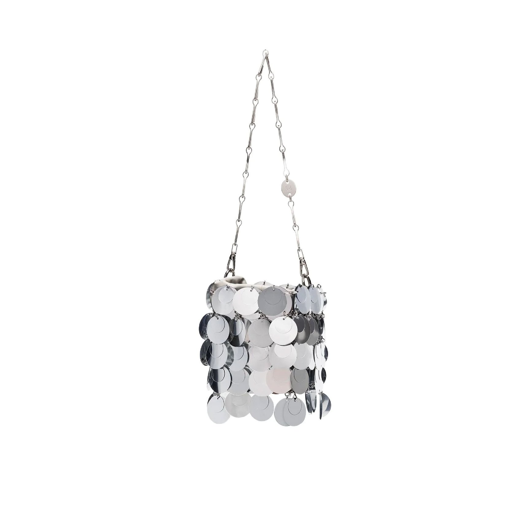 最後にご紹介するのは、メタリックを取り入れたドレスウェアや、大胆でセンスのあるボリュームアクセサリーをリリースしている「パコ ラバンヌ(Paco Rabanne)」。スパンコールが眩しいミラーボールさながらの賑やかなミニバッグは、どのアクセサリーよりも輝く主役級の一品。手にするだけでハッピーな気持ちになるような、エネルギーと輝きに満ちたアイテムです。