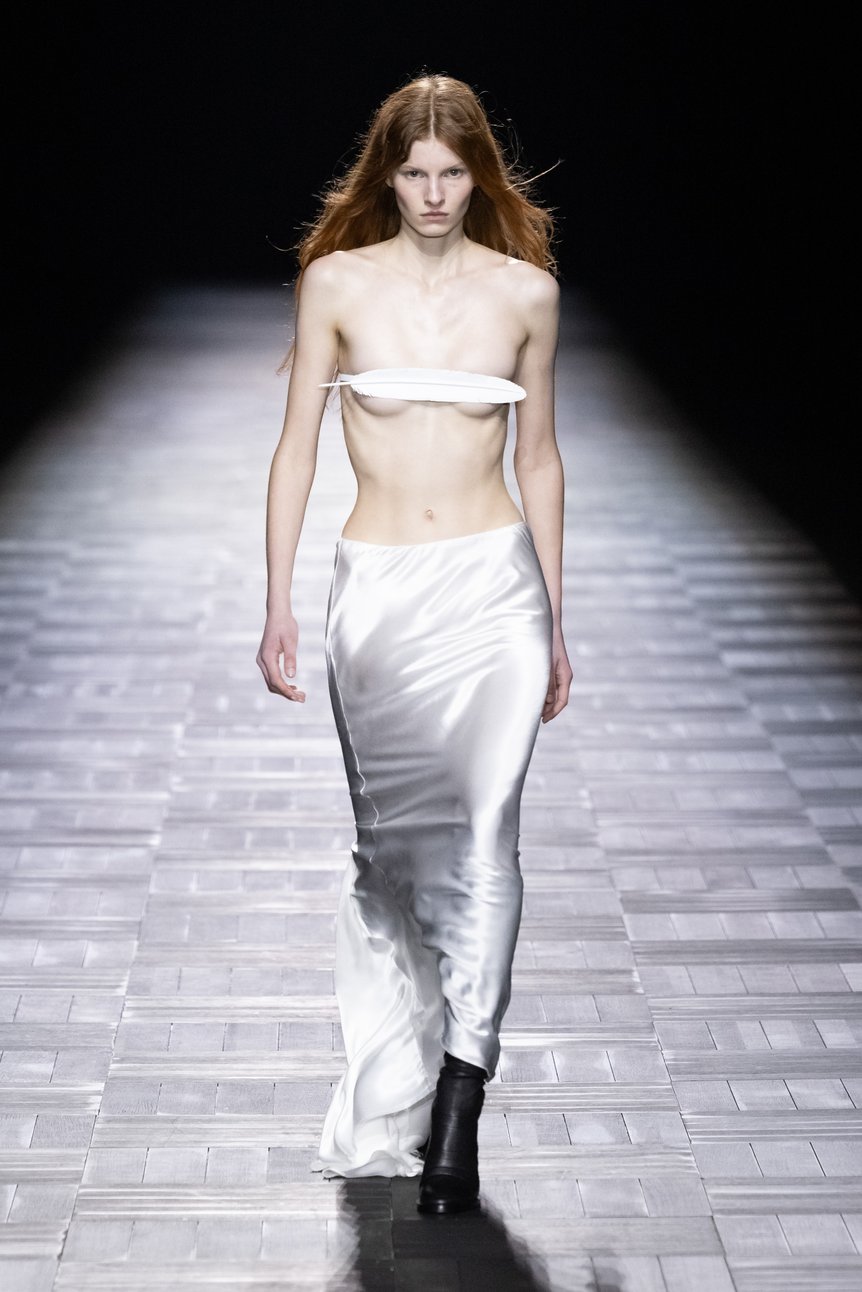 Z世代に人気のY2Kのようなボディを強調するスタイルは引き続き継続し、そこに80年代後半から90年代初頭のボディコンシャス、そしてクチュールのテクニックが融合することで、新しいシルエットを生んでいる。だがそれは異性の気を引くためのセクシーさの追求ではなく、あくまでも女性自身が主役。自分らしく自由に、そしてポジティブにセクシャリティを追い求めるフェミニズムの思想だ。