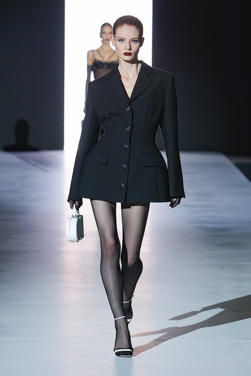 ケンダル・ジェンナー、ベラ・ハディッド、ヘイリー・ビーバーら、最先端のZ世代セレブから生まれた「ノーパンツ」スタイルを彷彿とさせる大胆なルックが目を引いた。トップやアウターはきっちりとまとめつつ、ボトムはショーツにストッキング、そしてハイヒールを合わせるのがポイント。