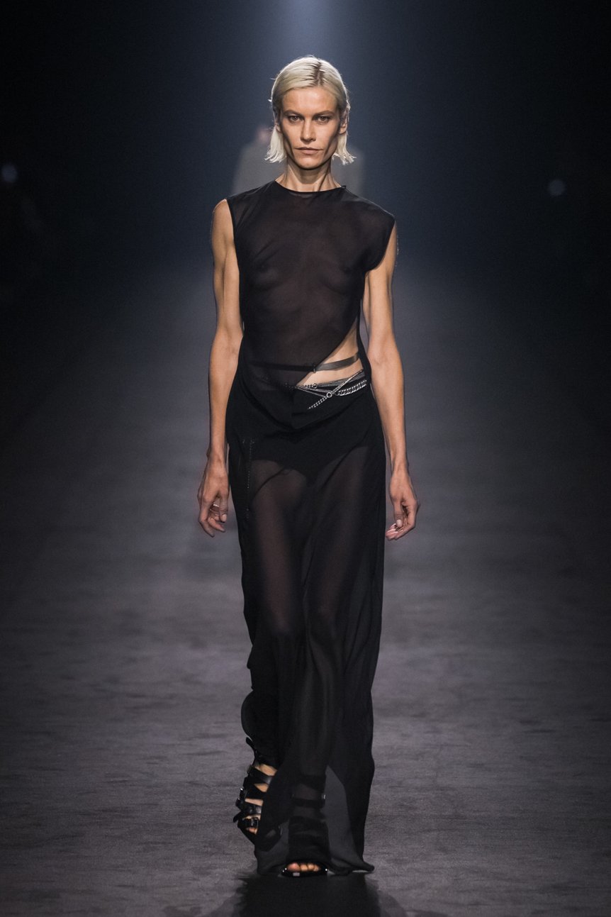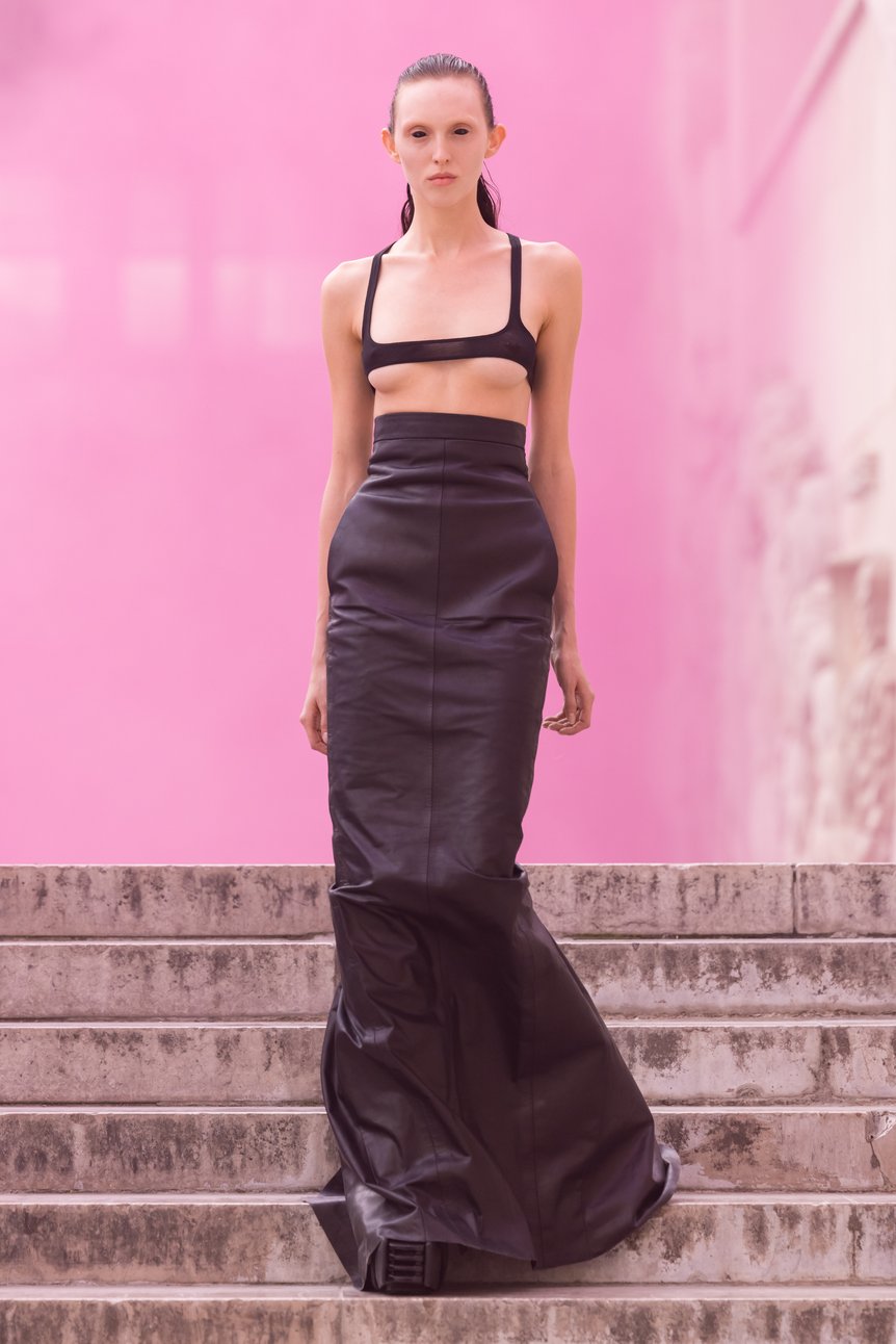 今シーズンはマイクロミニボトムの上にシアーなボトムをレイヤードすることで、ソフトな印象に。