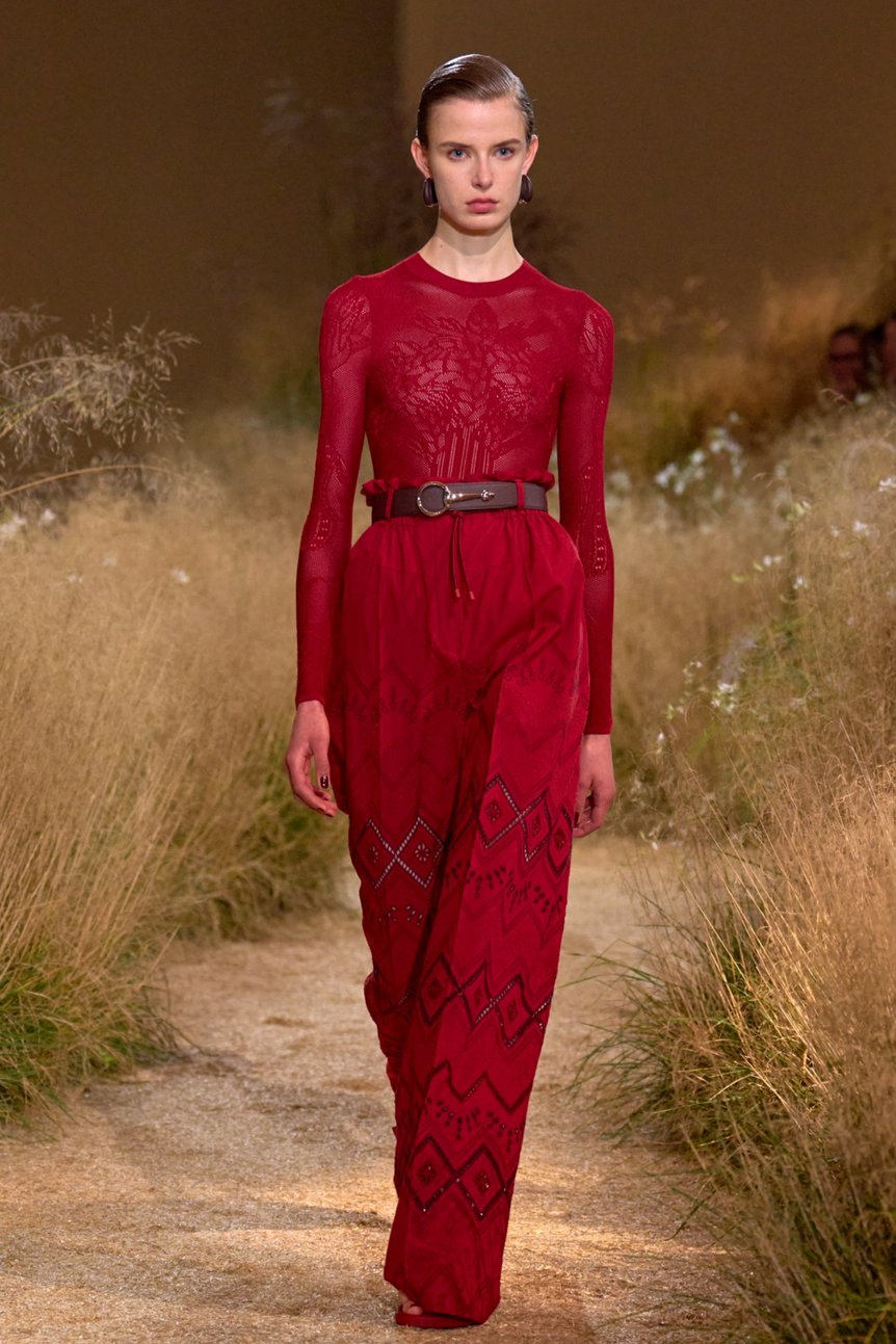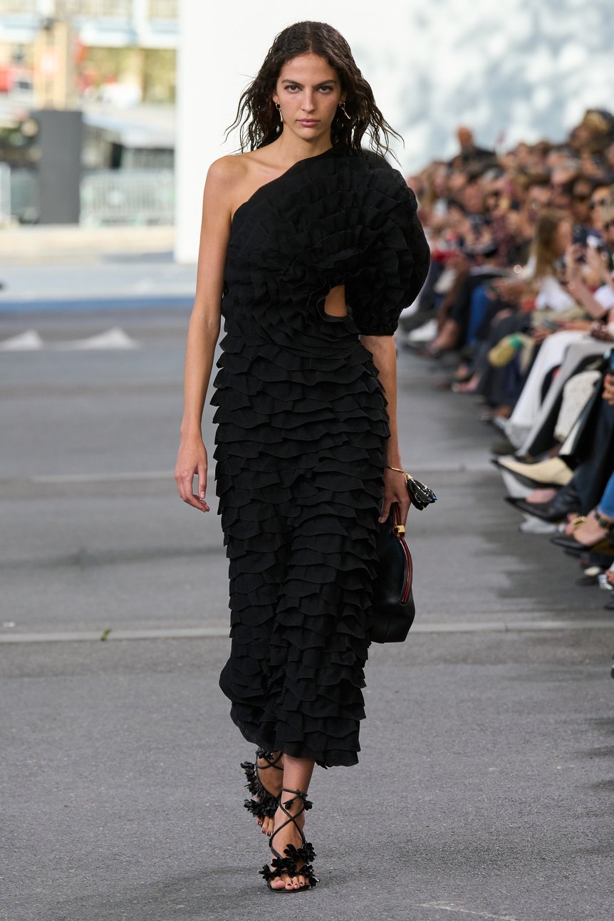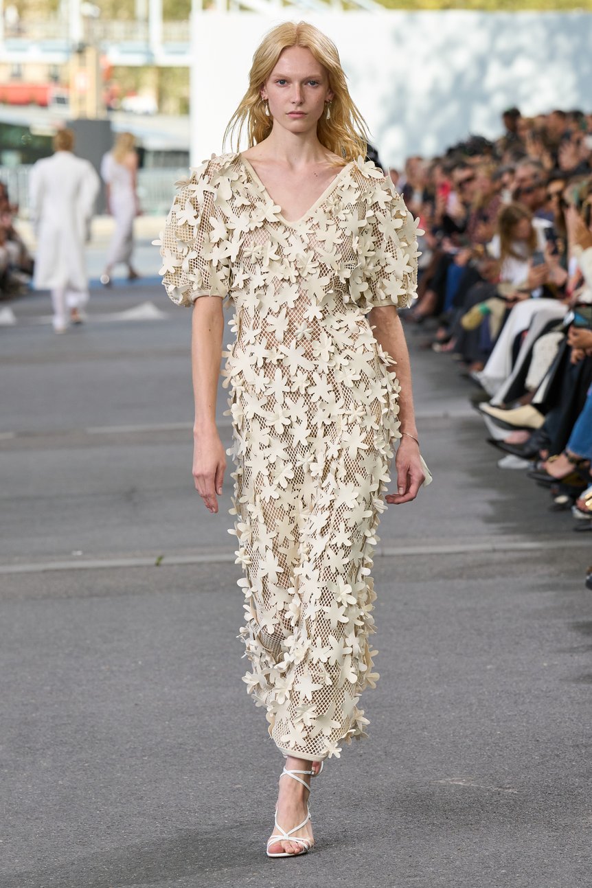 メンズの2024年春夏シーズンに続き、立体的に形作られたバラのモチーフを装飾に使い、デザインされたドレスが多く登場。