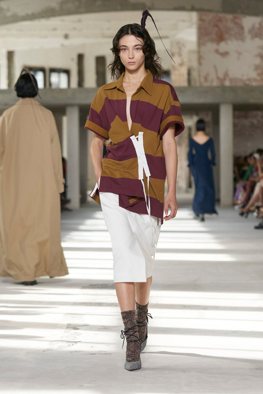 2024年春夏コレクションは、ワードローブにある定番服や実用服を解体し、プロポーションや構造をデフォルメすることで、その見せ方や機能を変化させようとする動きが見られた。また、普段は組み合わせることのない定番服同士をスタイリングで組み合わせるなど、新鮮で若々しいスタイルにも注目したい。