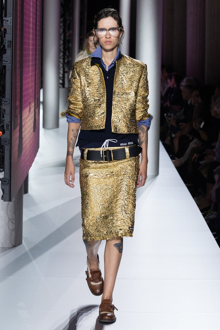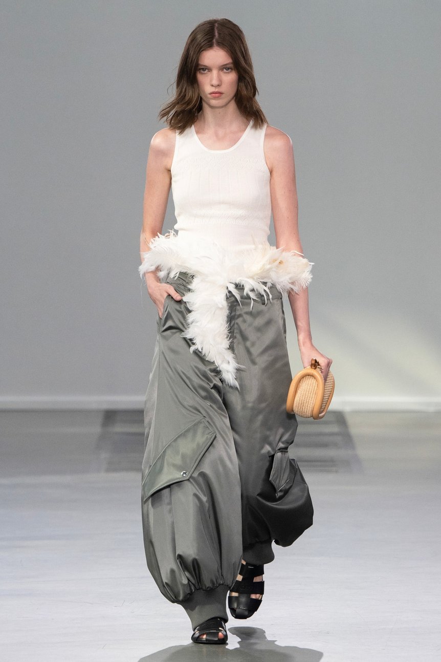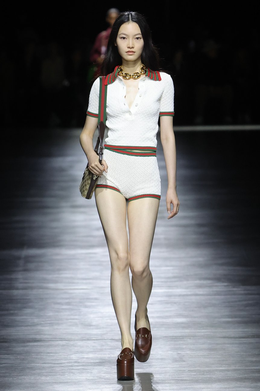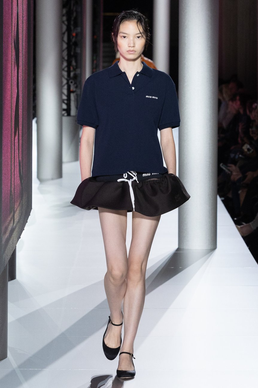 夏に開催されるパリオリンピックを意識してか、スポーティーなスタイルが特徴的な今シーズン。そのままスポーティーに着るのではなく、マイクロミニボトムやメリージェーン、ローファーなどを履いてシックに、そしてクールに仕上げるのが今季の特徴。