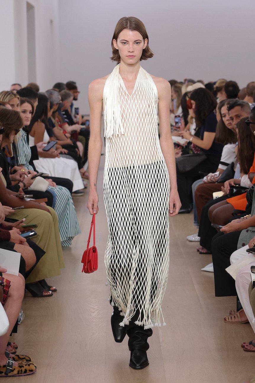 昨今の世界的な気候変動による猛暑を意識してか、手工芸的な技法のカットワークやフリンジ、メッシュ素材などが開発され、それによって涼しげなアイテムが次々と発表されている。