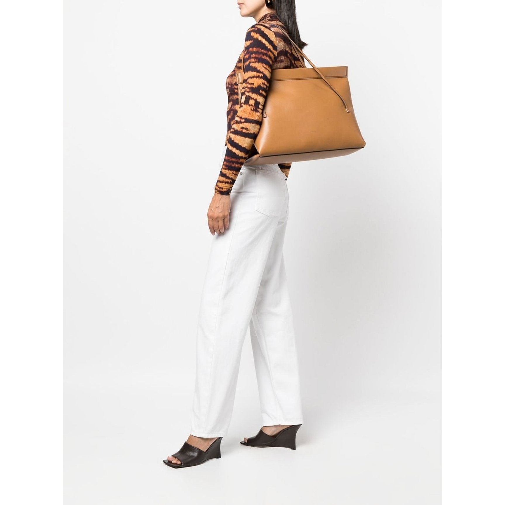 洗練されたフレンチカジュアルを体感できる「パトゥ(PATOU)」からは、定番人気のバッグコレクションをチョイス。半円形のフォルムとカットアウトしたフラップが印象的なアイテムは、ブラックやイエローなどの色違いもラインナップ。ショルダーストラップは調節が可能なので、ハンドバッグとしてもクロスボディとしても堪能できます。おでかけや旅行にもマッチするスクエアトートは、この夏の一軍として活躍しそう。