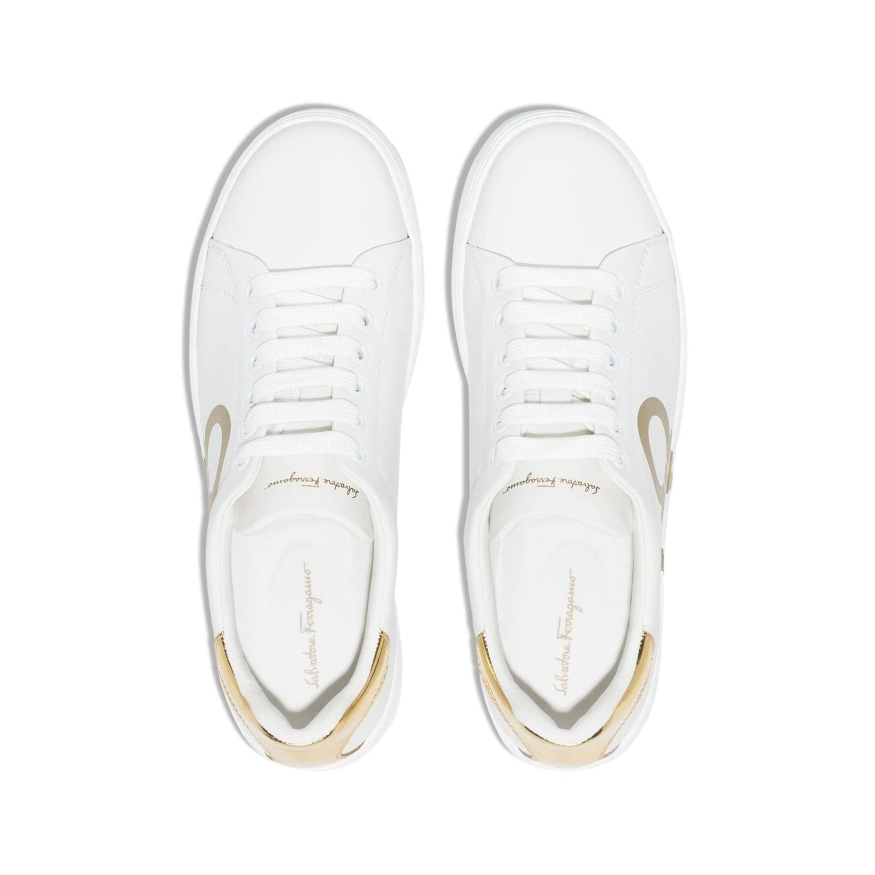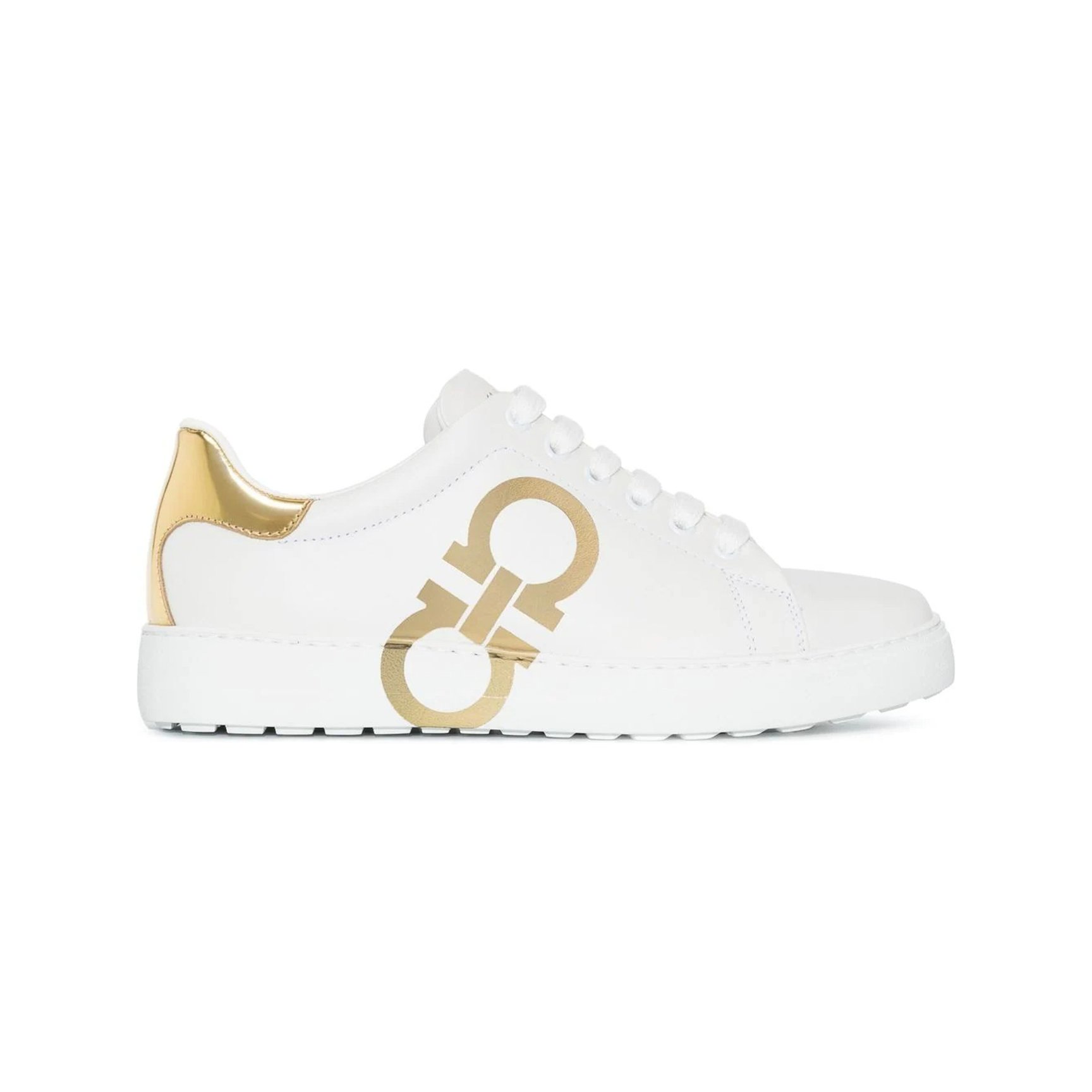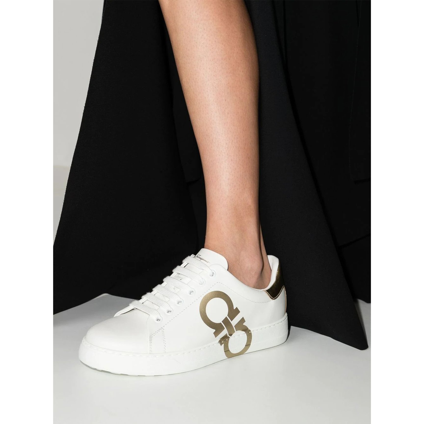 スポーティでプレーンなローカットシルエットに、ガンチーニが大胆にパッチされた「サルヴァトーレ フェラガモ(Salvatore Ferragamo)」のスニーカー。シンプルながらもグラマラスなムードを醸す一足は、大人のデイリースタイルにぴったり。