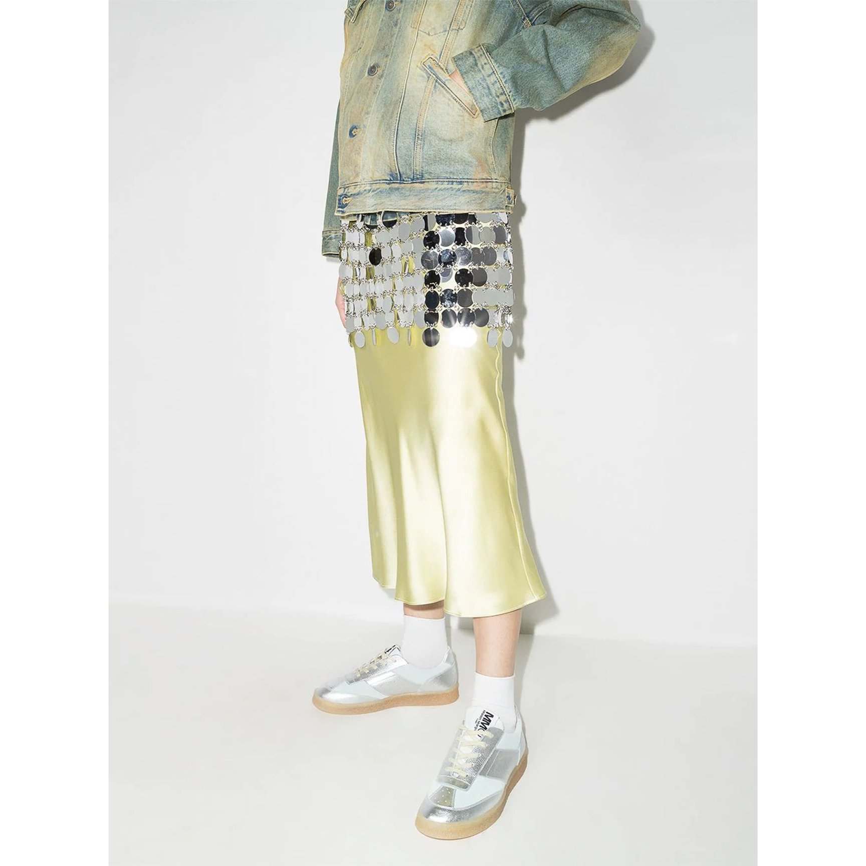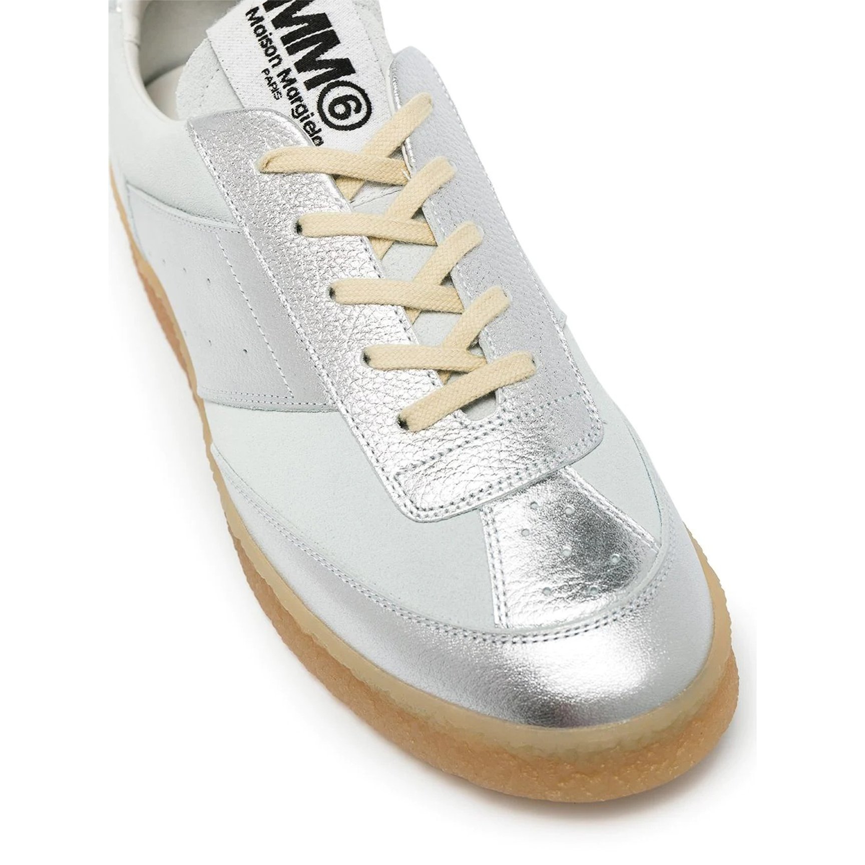 光り輝くメタリックがコーディネートのアクセントになる、「エムエム6 メゾン マルジェラ(MM6 Maison Margiela)」のReplicaスニーカー。人気の高いジャーマントレーナーは、ホワイトではなくシルバーをチョイスし、おしゃれに差をつけて。