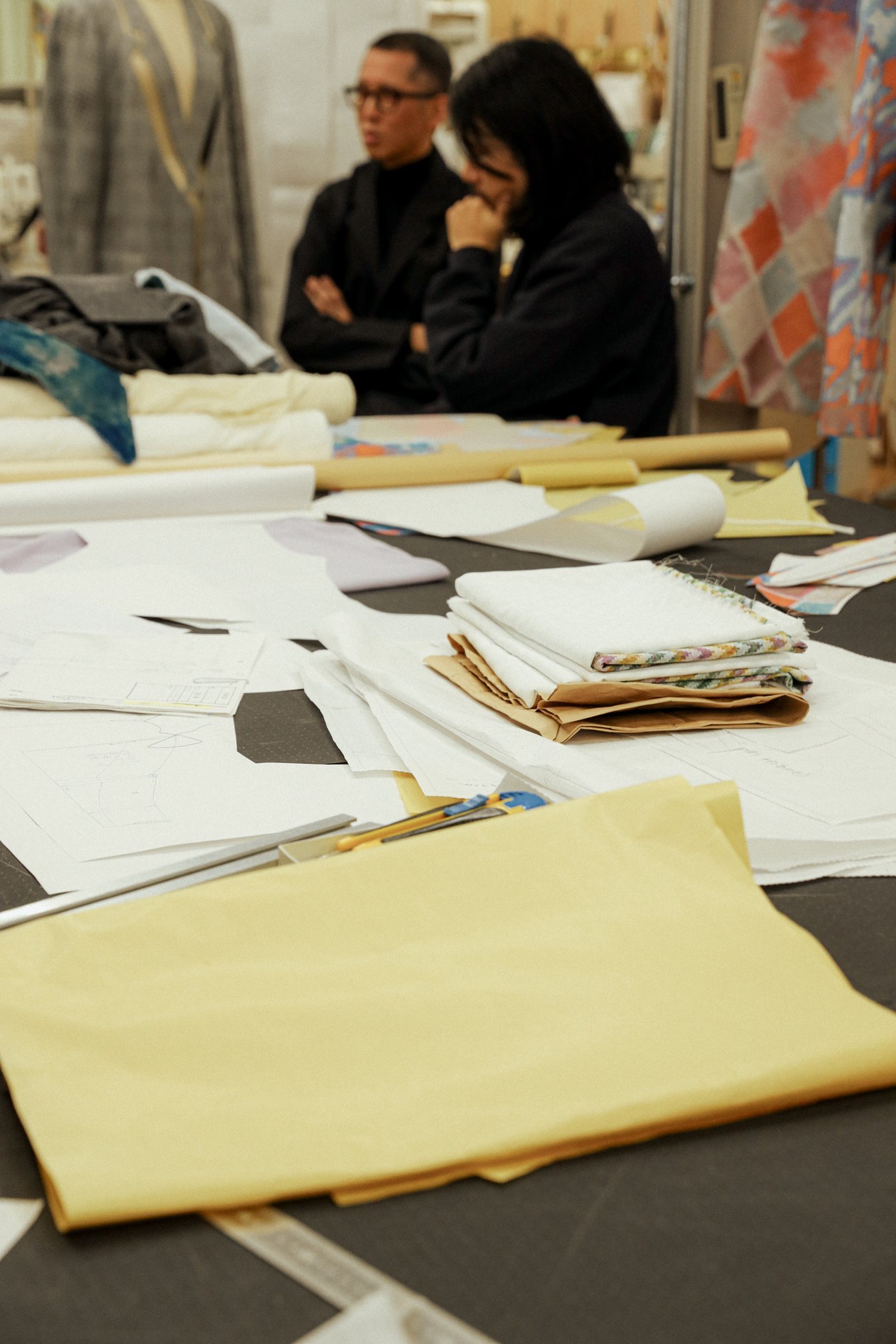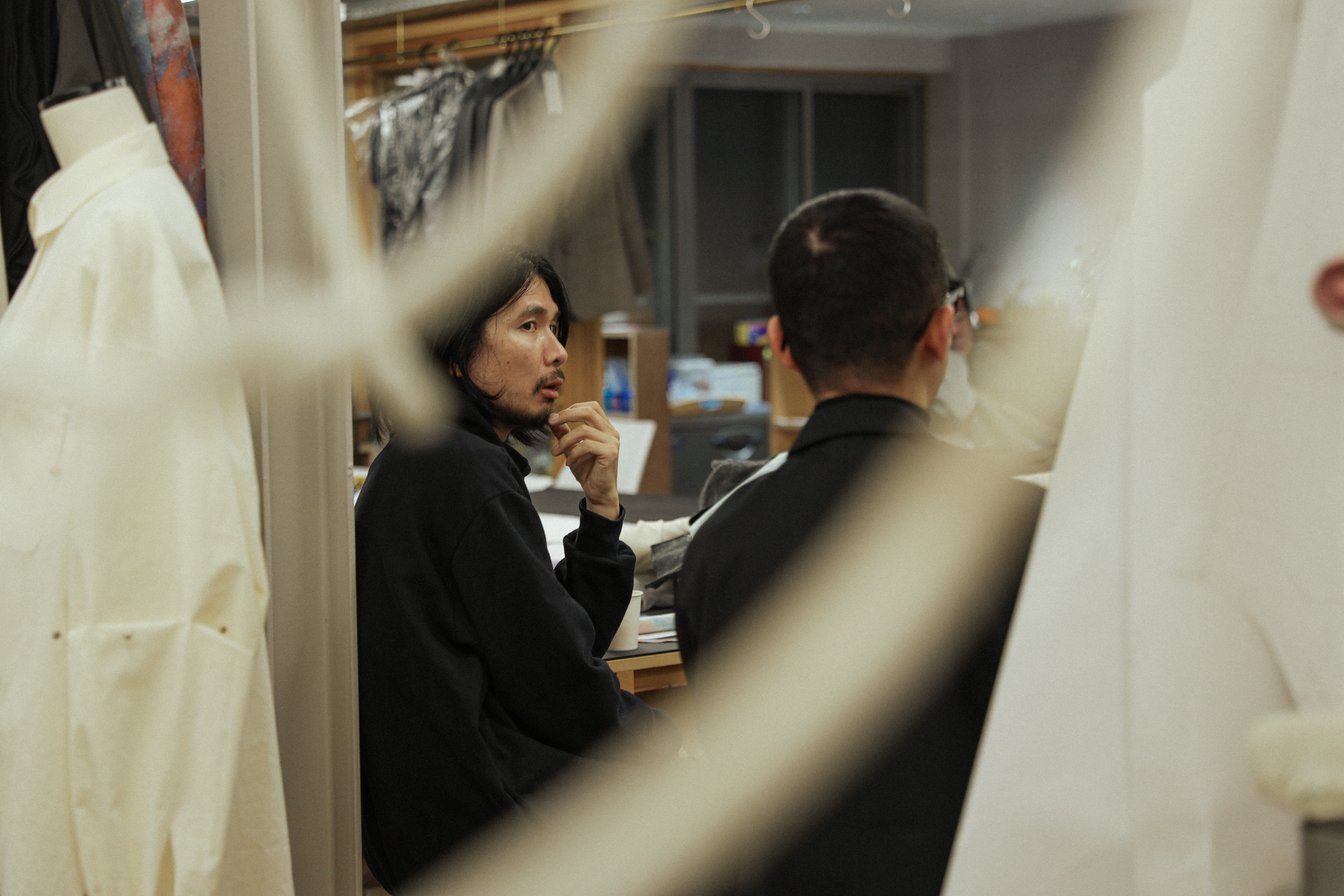 円安などの影響で海外進出のハードルが高くなった今、グローバルで活躍する新たな才能を生むために必要なものは何か。山縣と親交の深い「ティーエイチ プロダクツ(th products)」と「タロウ ホリウチ(TARO HORIUCHI)」のデザイナー堀内太郎を招き、東京・杉並にあるファッションしらいしの工場を舞台にファッション教育の最前線について聞く。