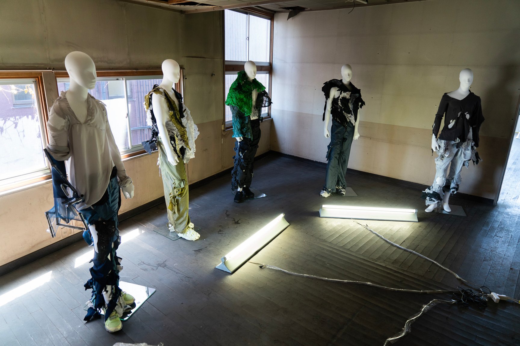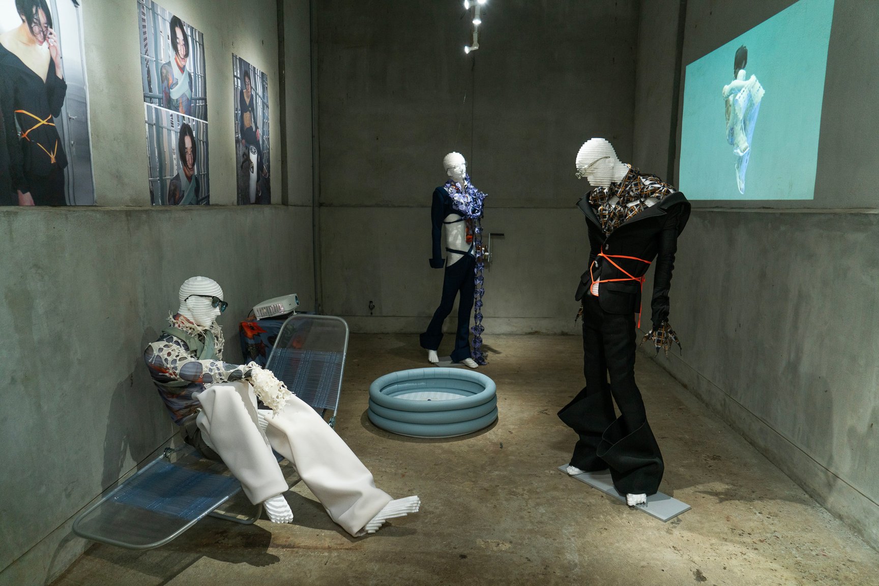 堀内:それこそ僕も、海外留学から帰国して六本木のミッドタウンの21 21DESIGN SIGHTで「バレンシアガ(BALENCIAGA)」のデムナ(Demna)やミキオくん(MIKIOSAKABE 坂部三樹郎)や中さん(AKIRANAKA 中章)達と一緒にインスタレーションを行ったのが卒業後に最初の外と接する機会で、商品は展覧会の後に伊勢丹新宿店のリスタイルで販売させてもらいました。 その時に実際に商品を売ると言う機会は経験としてもとても大事だと思いました。