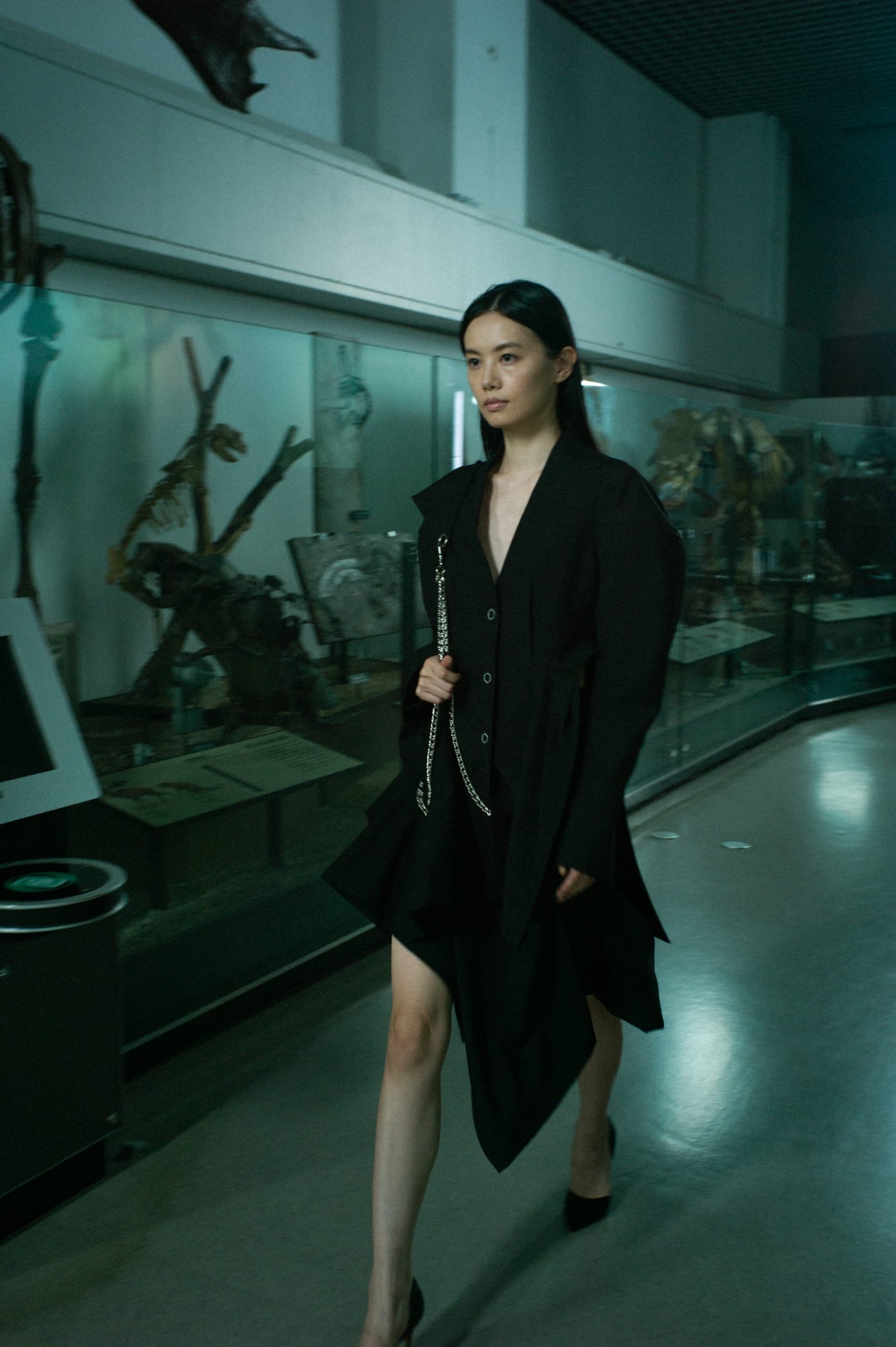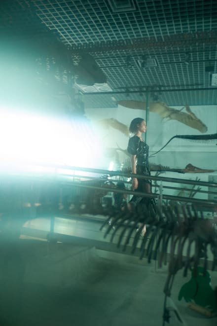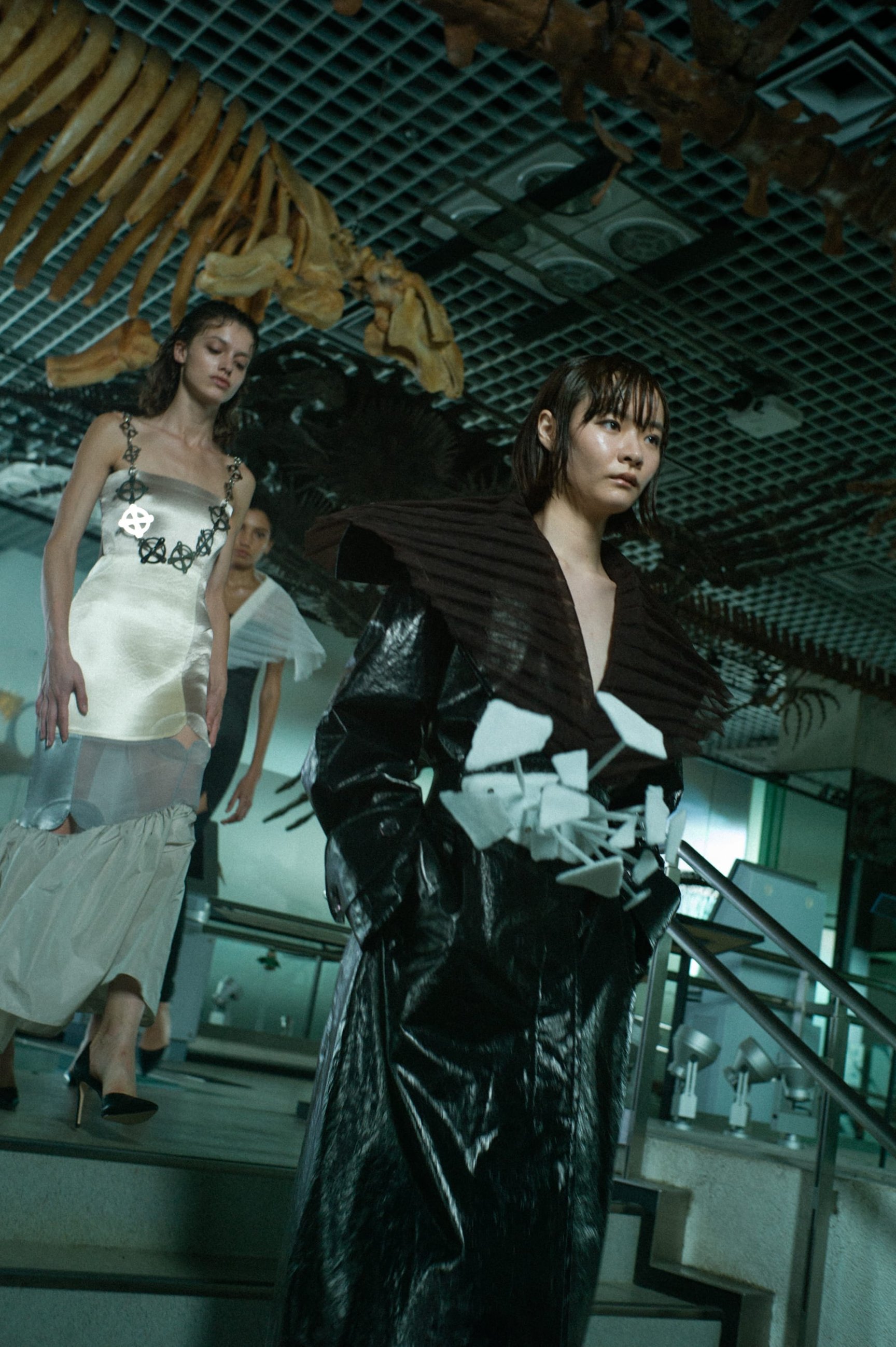 「ヨウヘイオオノ(YOHEI OHNO)」の2017年10月以来約5年ぶりとなるフィジカルショーの会場となったのは、上野にある国立科学博物館。恐竜の骨格標本などが展示される空間で、ブランド最大の特徴であり、大野陽平の研究対象でもあるフォルムの追求は"切れ味"を見せた。