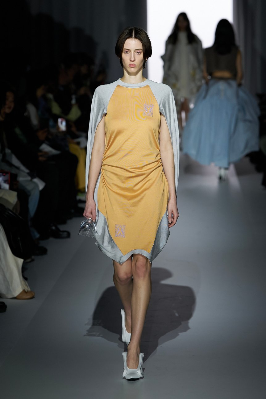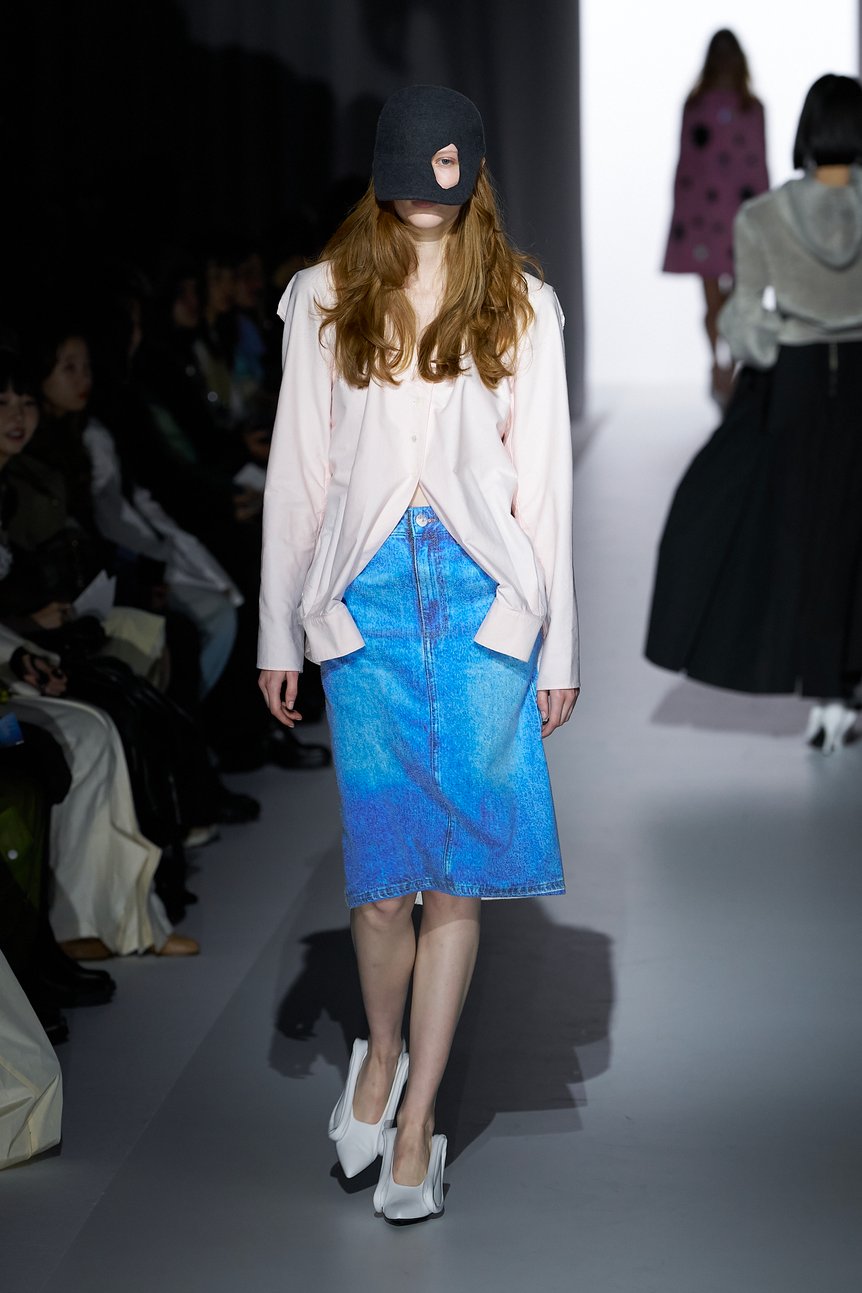 ヨウヘイオオノの素晴らしい点は、「売りやすいもの」に逃げず、「未知のフォルムの探求」を果敢に続けていることにある。前回ランウェイショーを行った2024年秋冬で「かつて憧れたラグジュアリーファッションと現在の自分との心的距離」をテーマにして以来、大野は「ラグジュアリーとは程遠い、素朴な日常の中で『塑像』を繰り返す自分」という立ち位置を明確に認識したものづくりを続けてきた。だからこそ、生み出されるアバンギャルドな造形は、未知ゆえの奇妙さはありつつも、決してリアリティから完全に切り離されることのない、心理的距離を感じさせない絶妙な親しみやすさを保っている。