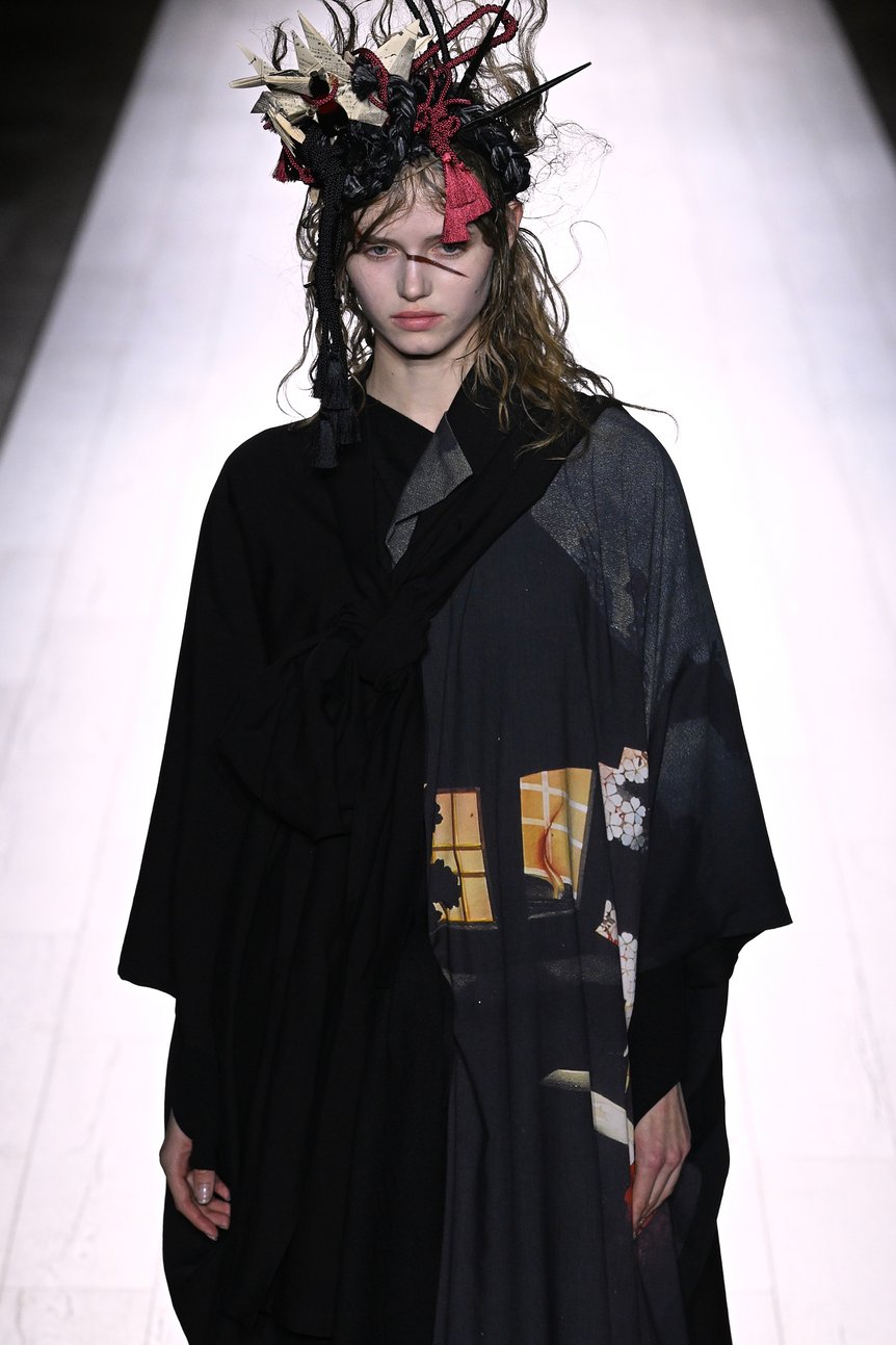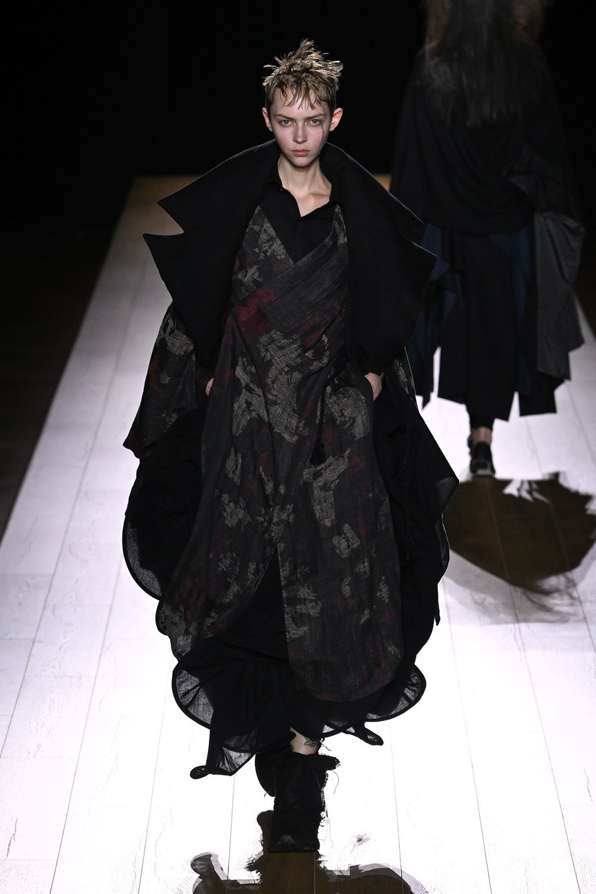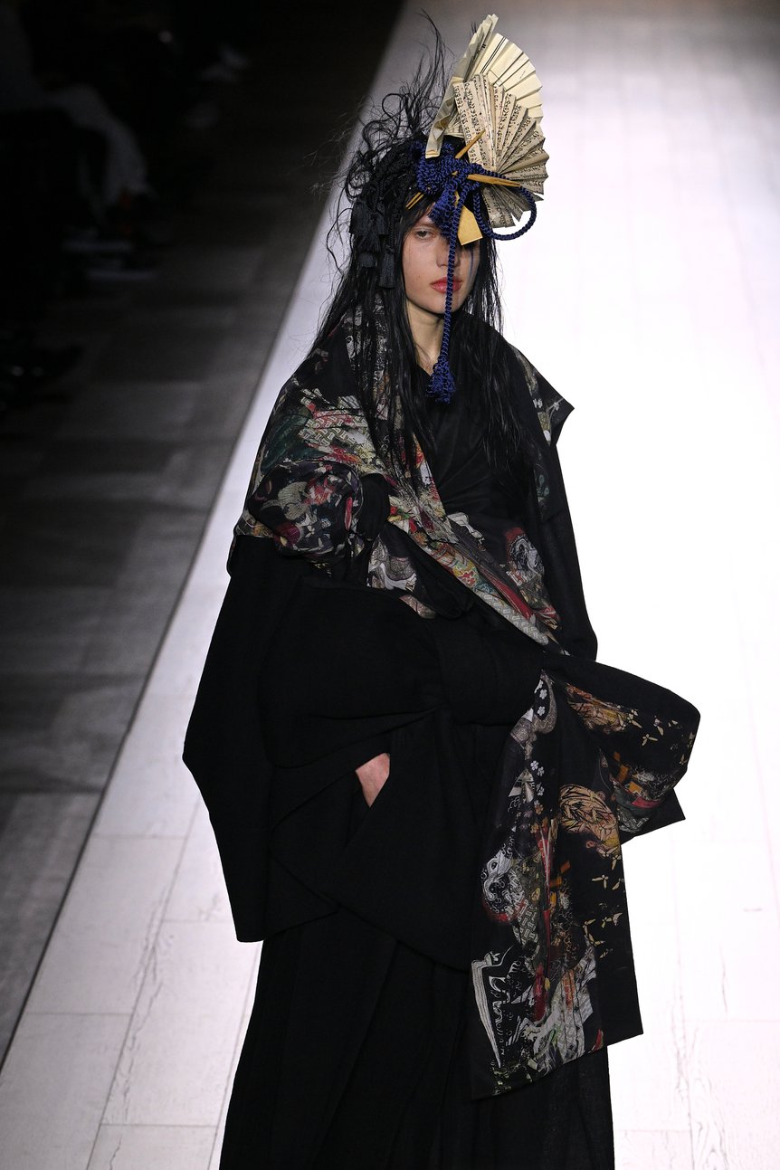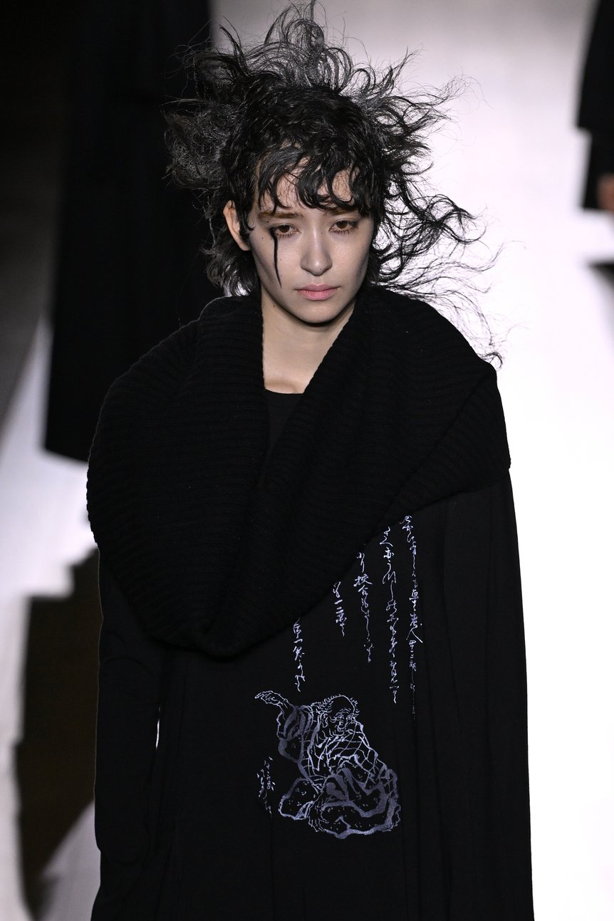 「私だけではなく、私たちは作り続ける必要がある。情熱を持って」──山本耀司が、パリで開催したランウェイショーのバックステージで語った。「私たち」とは、「ヨウジヤマモト(Yohji Yamamoto)」のチーム、ファッション界、あるいは社会と対峙するアーティストたちを指しているのかもしれない。2026年秋冬コレクションでは、山本が敬愛するアーティストのひとりだという葛飾北斎の作品を取り入れている。90歳に至るまで絵に情熱を注ぎ続けた北斎と、山本の姿が重なった。