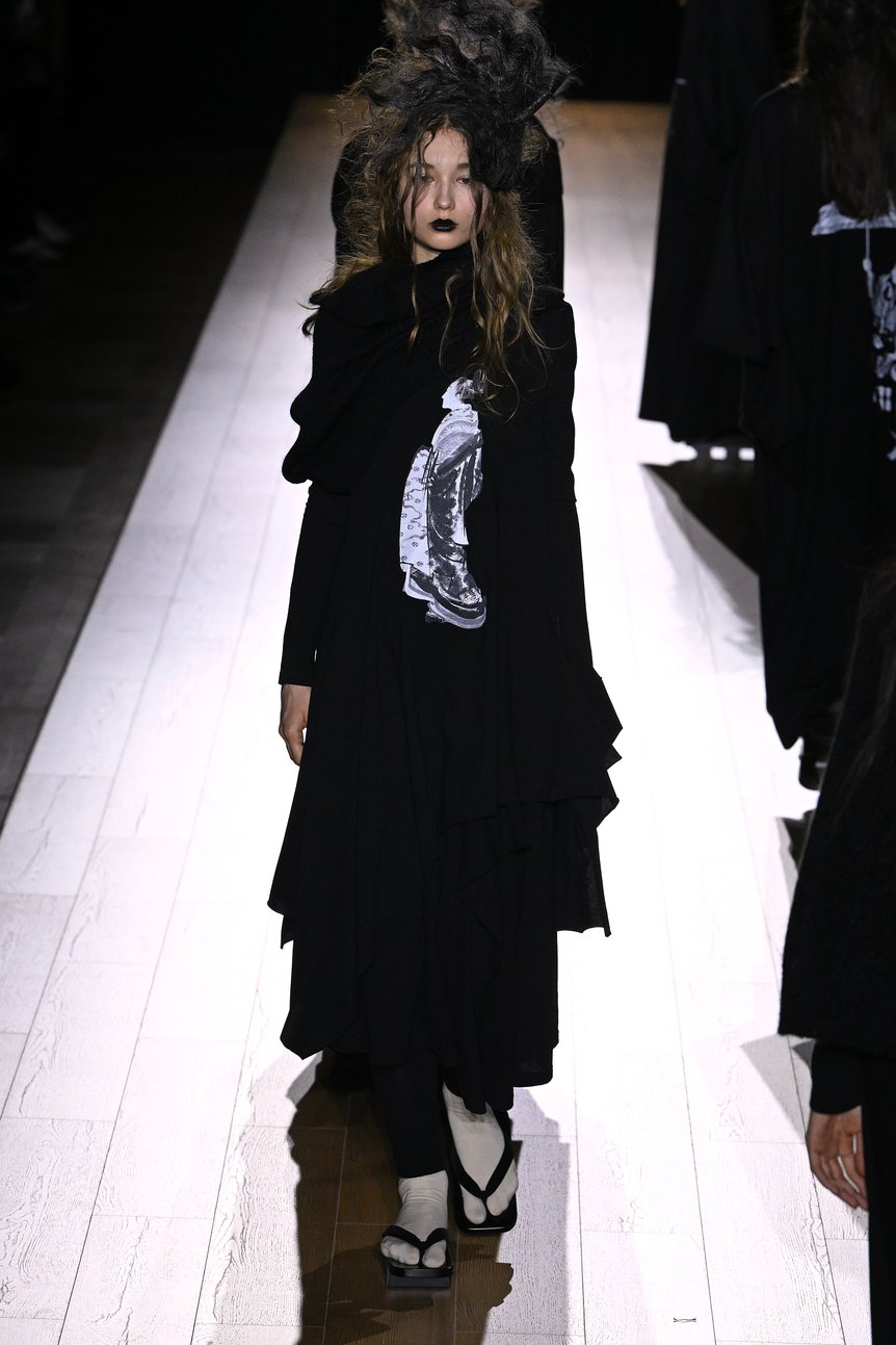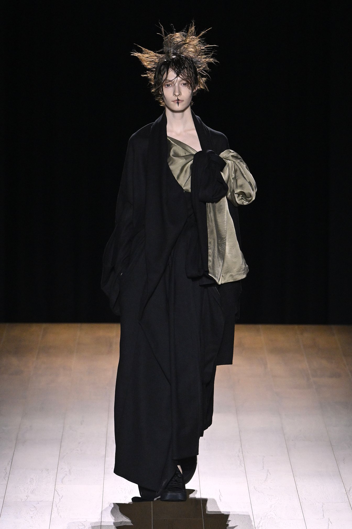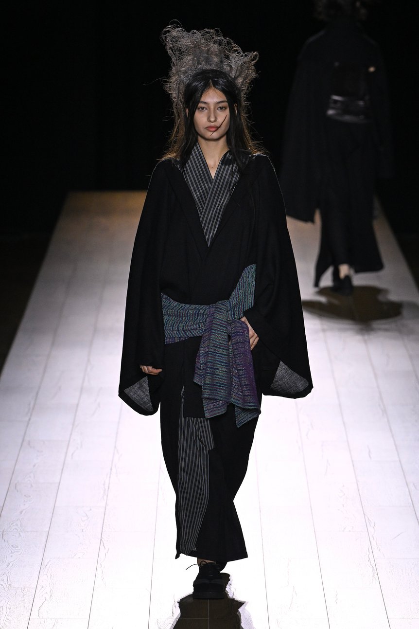 「私だけではなく、私たちは作り続ける必要がある。情熱を持って」──山本耀司が、パリで開催したランウェイショーのバックステージで語った。「私たち」とは、「ヨウジヤマモト(Yohji Yamamoto)」のチーム、ファッション界、あるいは社会と対峙するアーティストたちを指しているのかもしれない。2026年秋冬コレクションでは、山本が敬愛するアーティストのひとりだという葛飾北斎の作品を取り入れている。90歳に至るまで絵に情熱を注ぎ続けた北斎と、山本の姿が重なった。