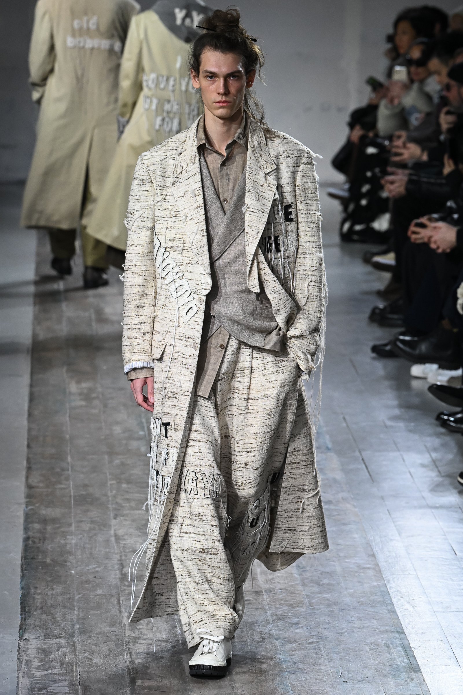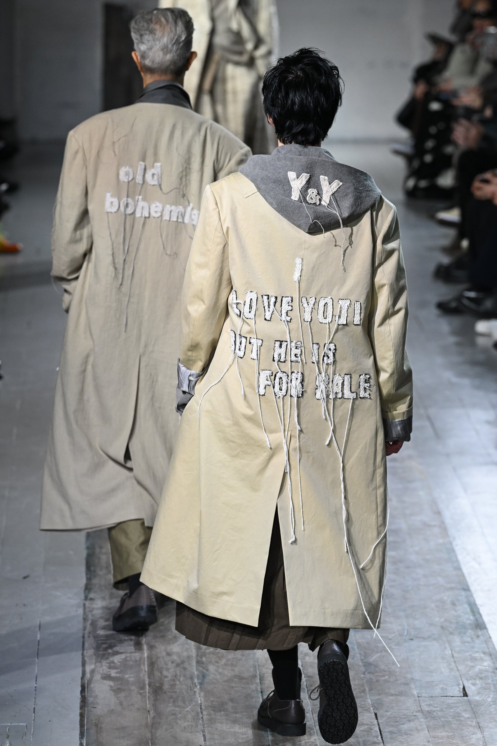 今シーズンのメンズファッションウィークは、混沌とした世界にデザイナーらが何を思い、もの作りや表現を通じて何を伝えたいかが浮き彫りになっている。パリで開催された「ヨウジヤマモト プールオム(Yohji Yamamoto POUR HOMME)」2024年秋冬コレクションのショーは、山本と長年の親交がある映画監督ヴィム・ヴェンダースの出演や、男女が服を共有し寄り添って歩く姿など、人間同士の深いつながりを感じさせた。