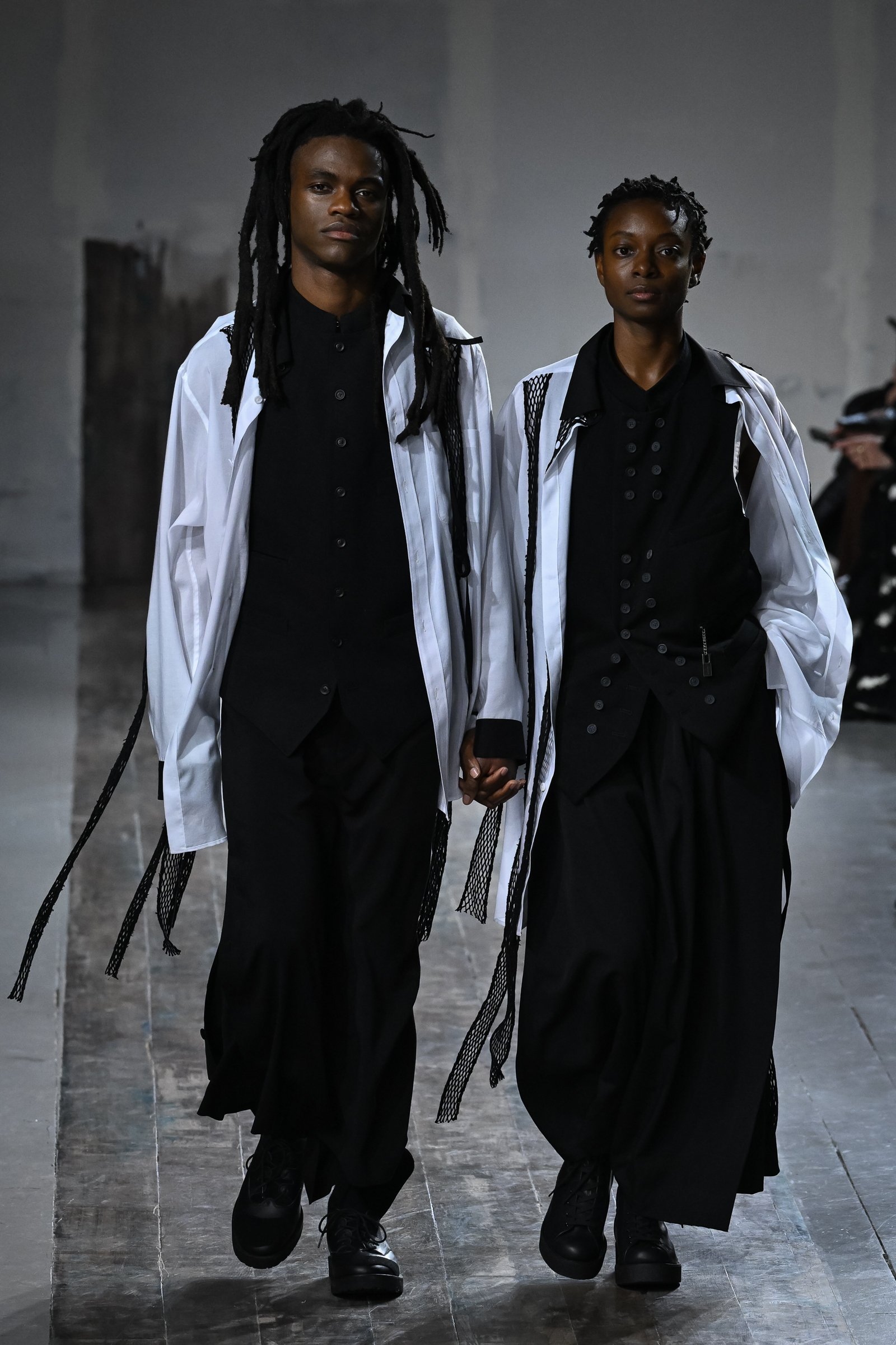 ファッションショーは、もちろんファッション(=服、およびスタイル)が主役なのだが、今回のヨウジヤマモトは人が主役だったのではないかと思わずにはいられない。「着る人を引き立てる服」という常套句が安直に聞こえるほど、人が持つ色や温度、人間性がじわりと服に滲み出るような、そんなコレクションだったように振り返る。終始穏やかなムードに包まれ、友情や愛情といった、様々な形の人間愛が垣間見えるようだった。