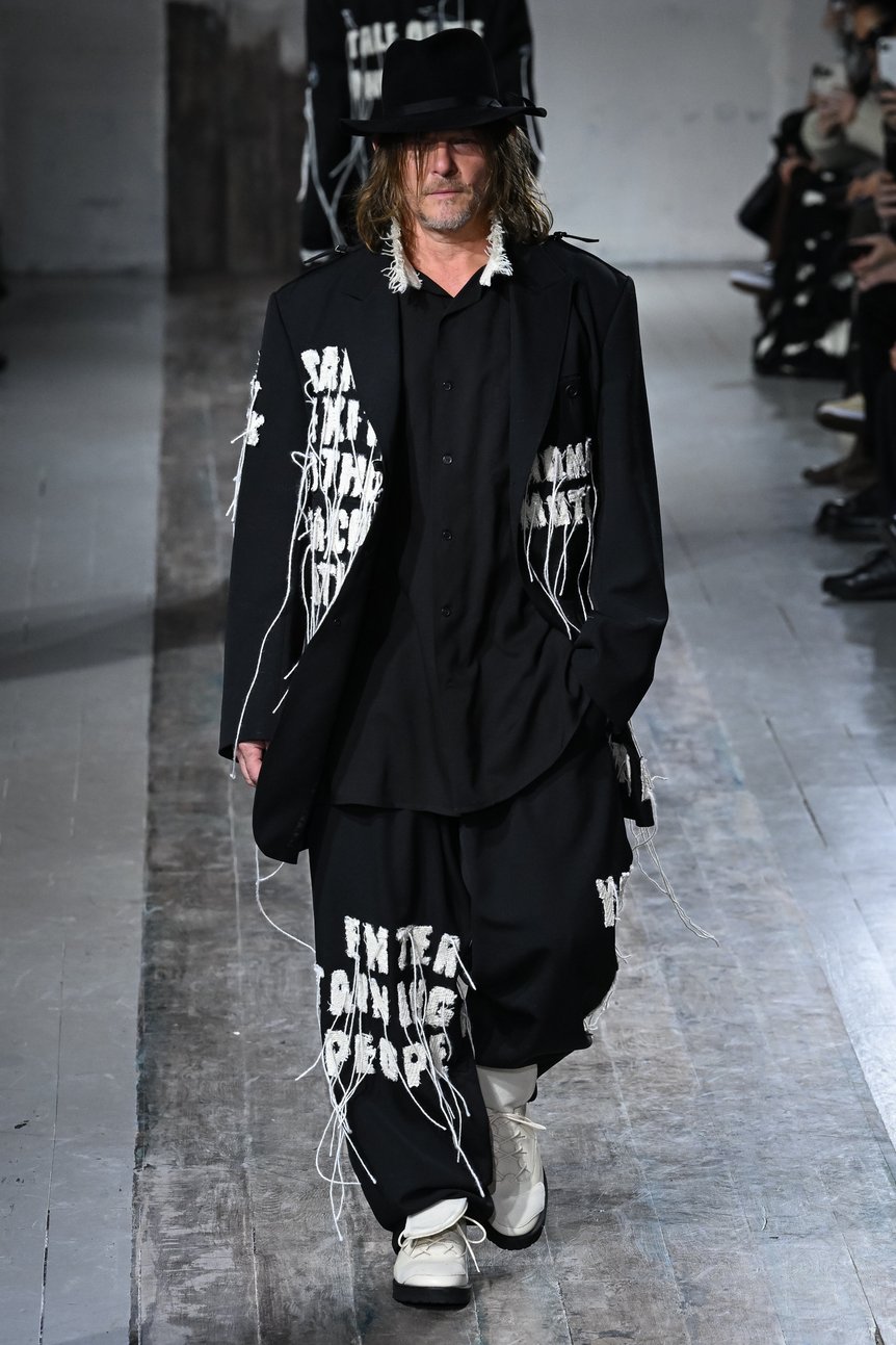 また、大ヒットしたテレビドラマ「ウォーキング・デッド」のダリル・ディクソン役で知られる俳優ノーマン・リーダス(Norman Reedus)もランウェイを歩いた。彼は日本に住んでいたこともあり親日家で、ヨウジヤマモト プールオムと「ネイバーフッド(NEIGHBORHOOD)」によるコラボレーション第2弾(2023年12月発売)のキーヴィジュアルに起用されたことも記憶に新しい。