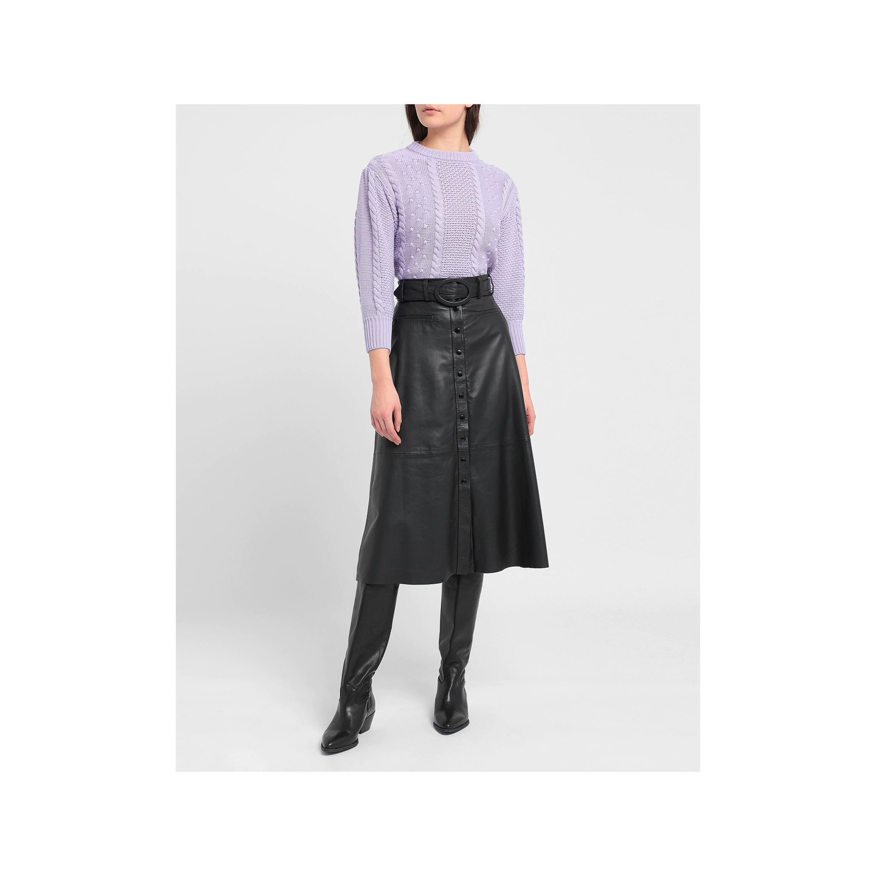 少し重くなりすぎる秋冬のカラートーンですが、それだけじゃつまらない!と言う人におすすめなのがライラックカラー。コットン100%のプルオーバーで肌触りもよく、ケーブル編みなど様々なパターンの編みで異なるニュアンスが楽しめます。ジャケットやコートの下に着ても爽やかな印象を与えられる一枚。