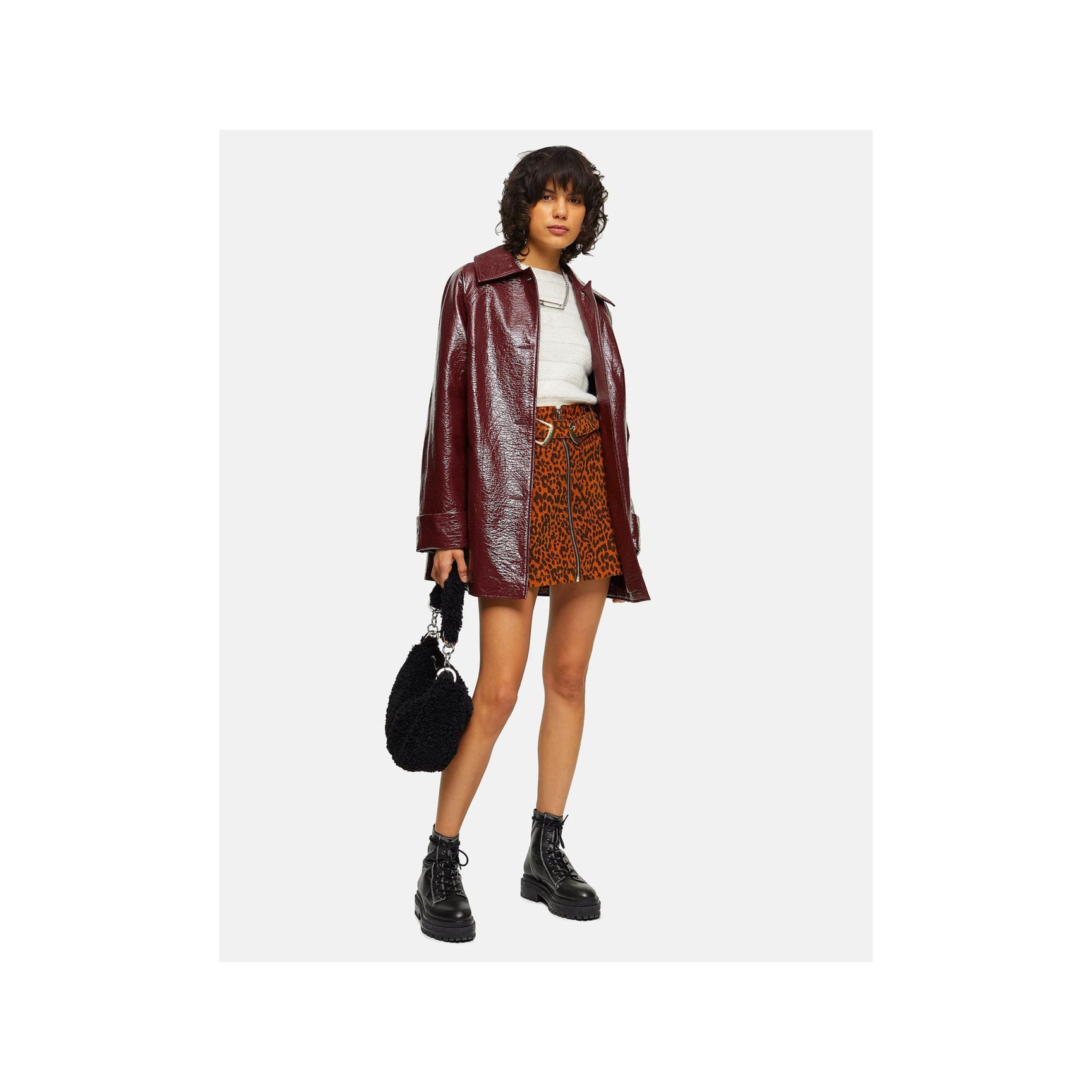 秋のファッションでデイリーに活躍してくれそうなバーガンディーカラーのPUコート。大きめな襟と袖のデザイン、ストレートなシングルブレストがクラシックな雰囲気です。黒はもちろんレオパードなどの大胆な柄、またブーツとの相性もよさそう。