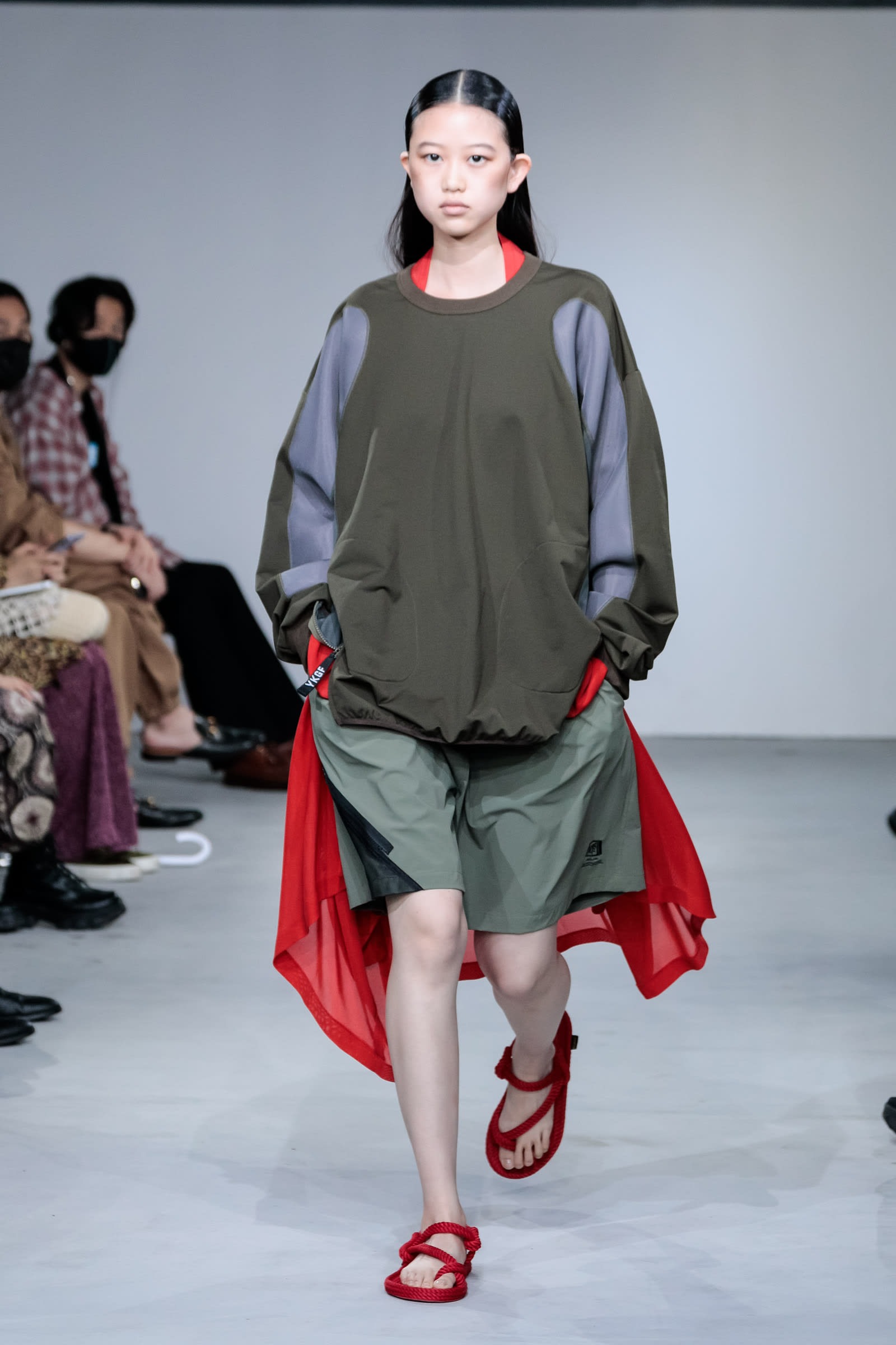 メッシュ素材のインナーが覗くレイヤードスタイルなど、音楽のレイヤーと親和させることで、わかりやすさも担保している。モデルのスピーディーなウォーキングと音楽が織りなす小気味良さは、観覧者に高揚感を与えた。