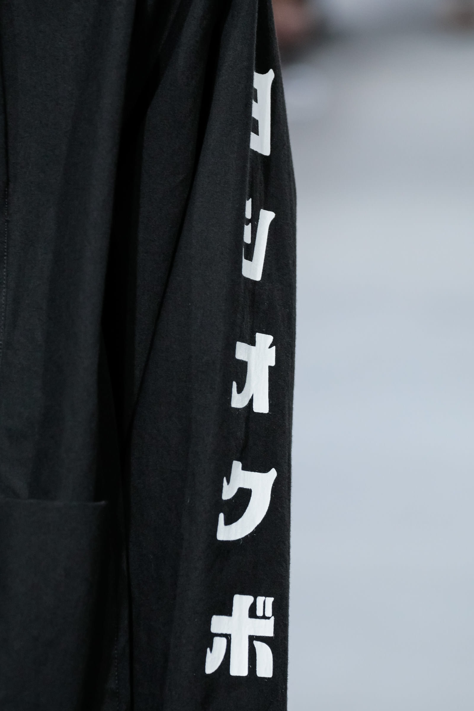 ここ数シーズン、ヨシオクボは和の要素を取り入れている。久保はあくまで和洋のハイブリッドにこだわっており、「日本人はアメリカナイズされていて、ミリタリーと言えば米軍服を頭に思い浮かべる。でも日本のミリタリーもあって、そこで面白いのと思ったのが坊さんのミリタリー」とし、僧兵を今回テーマに選んだという。マルタン・マルジェラが足袋をモチーフにブーツを作ったように、ゴールはカルチャーの融合による新しさの追求。全ルックにスタイリングした、トルコ発のエコフレンドリーなビーガンロープサンダル「ボホノマド(BOHONOMAD)」とコラボレーションサンダルも、ハイブリッドを目指した結果だという。