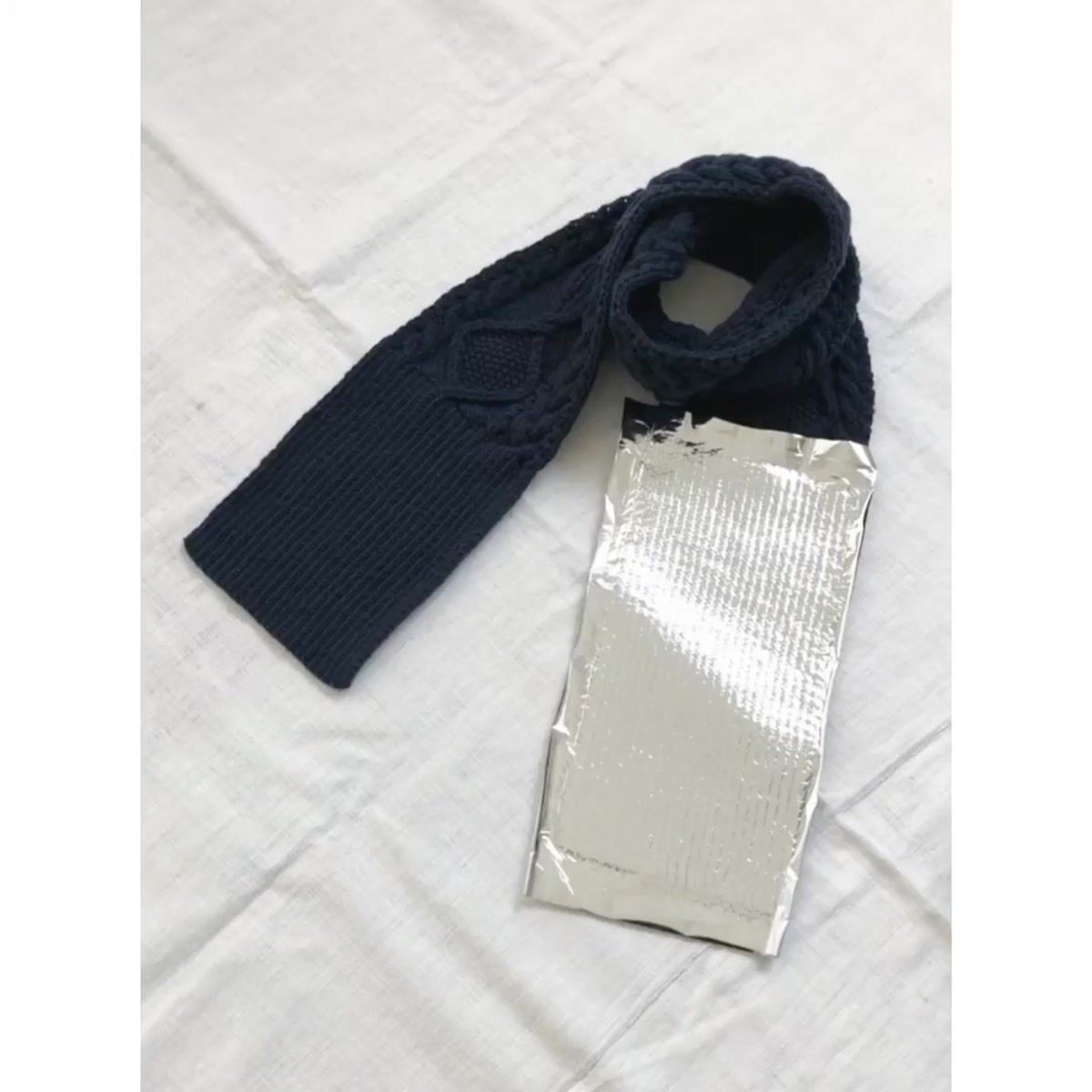 F:箔の部分を見せずに普通のアランマフラーとしても使えるようになっていますね。その日の気分によって色々と使い分けができそうです。