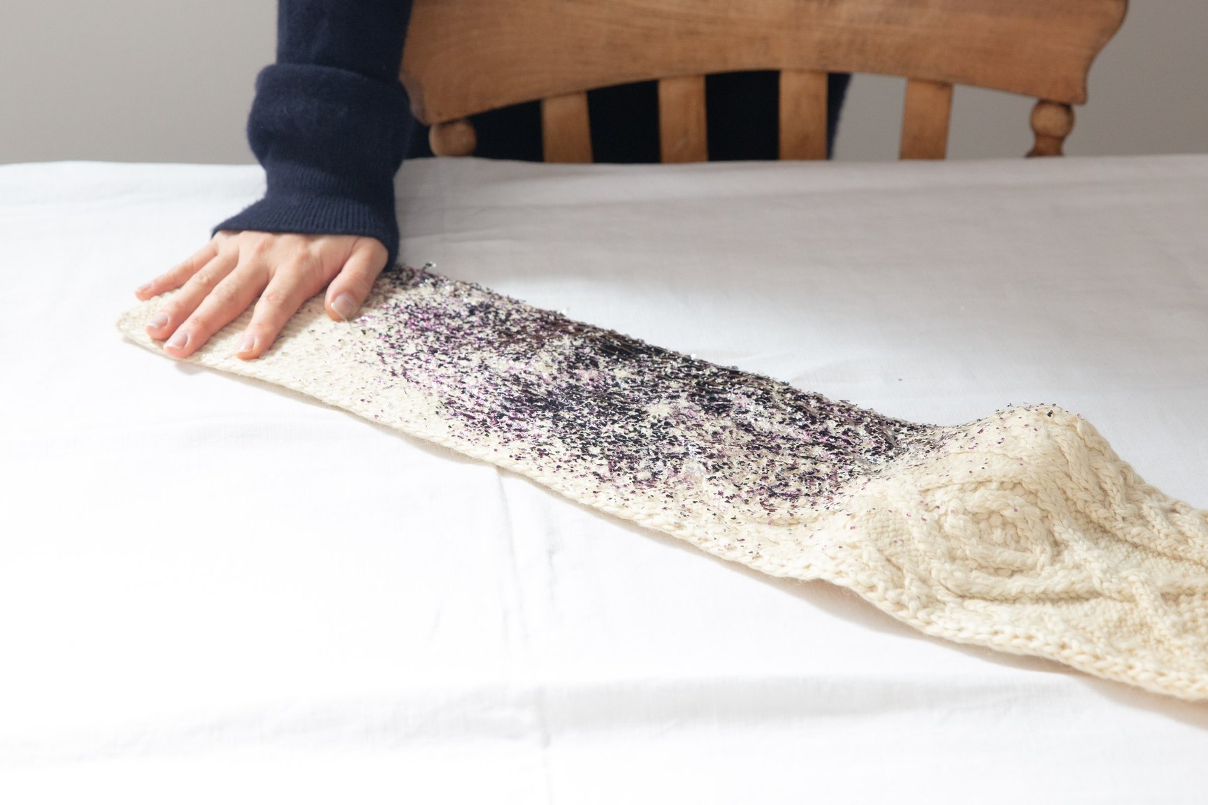 もちろんニットアイテムは全てできます!愛用するうちに汚れてしまったら、その傷に新しくブルーの箔を足すとか。オーダーのリペアを承っているので、時間を重ねたら重ねただけ、自分だけの1枚にできる未来の時間も含めて、お迎えしてもらえたら嬉しいです。