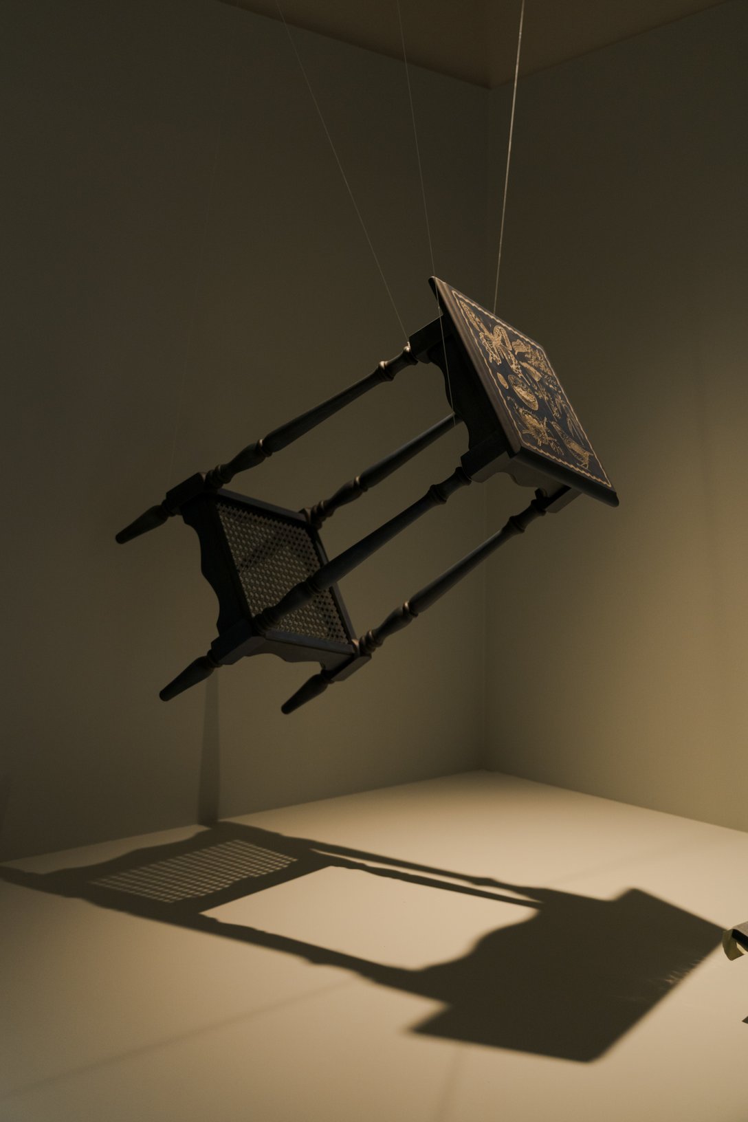 会場では、藤澤さんと公私ともに親交が深いという音楽家の青葉市子さんによる心地良い音楽と、会場構成を担当したHYOTAさんによる“魔法の空間”がお出迎え。「今あるものをつなぎ直し、時を越える魔法をかける」という同展のコンセプトワードから着想を得て、家具が宙に浮いているなど、作品の世界観を遊び心とともに豊かに表現した展示空間が広がります。