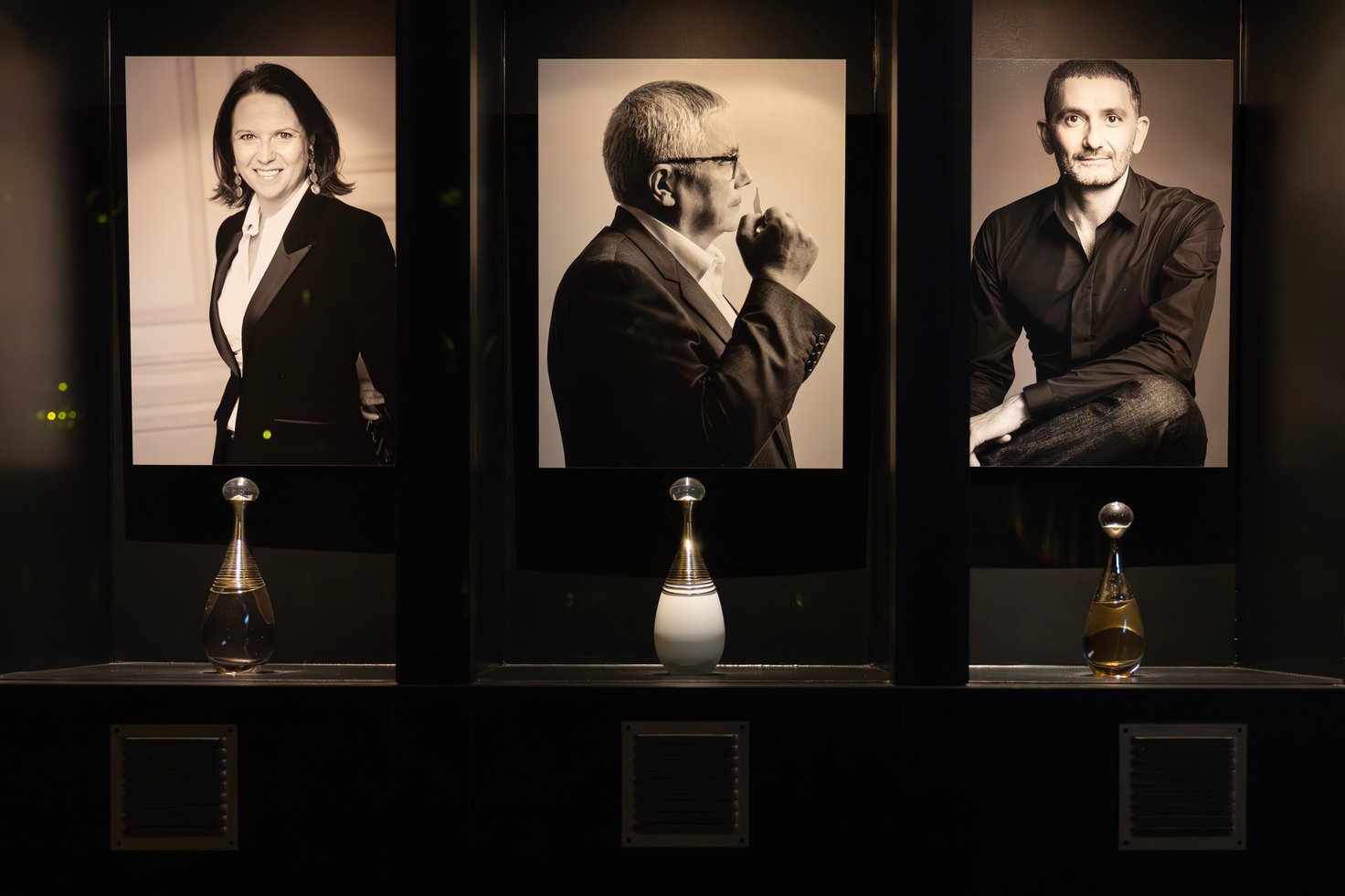 そしてジャドールの生みの親 カリス・ベッカー、ジャドールの香りをさらに大衆に広め、「ジャドール パルファン ドー」などを世に送り出したフランソワ・ドゥマシー、そして「ジャドール ロー」という新たな香りの扉を開けたフランシス・クルジャン、といった3人のマスターパフューマーのポートレイトが香りとともにディスプレイされています。