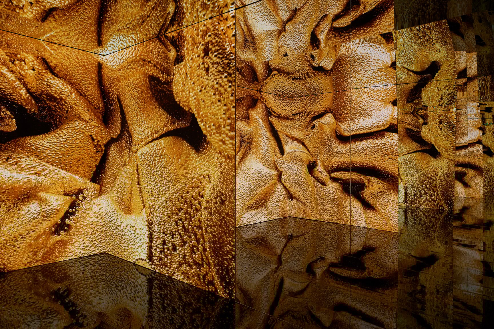 ▲ジャドールの香りをイメージしたメルティング ゴールドの泉。ゴールドが溶け出す様子を表している。