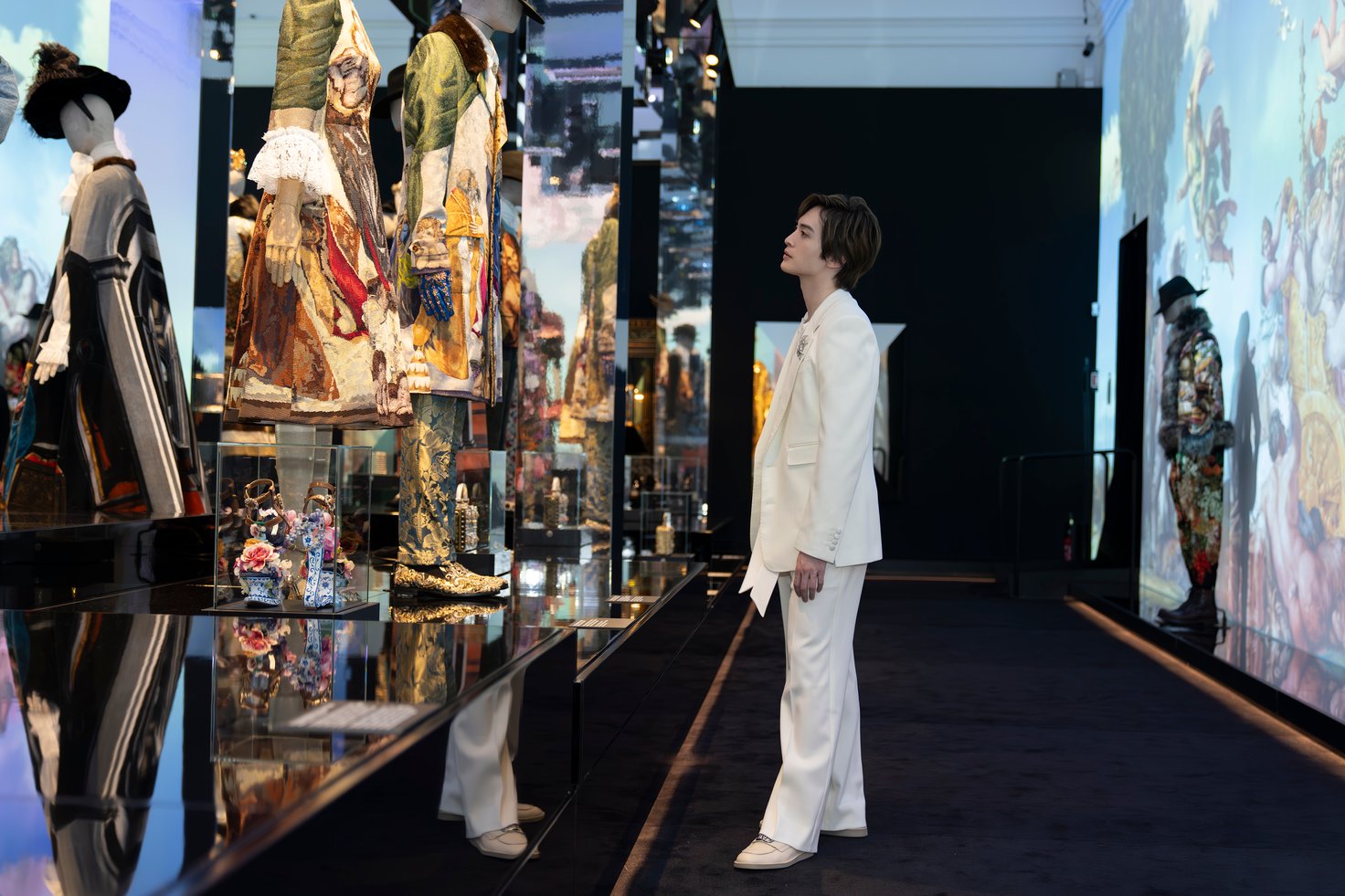 玉森さんも説明を受けながら各部屋に展示されたピースを一点ずつ見入るように鑑賞。それぞれのテーマの世界観が緻密に表現された部屋や、職人の手仕事が感じとれるようなアルタ モーダのピースに圧倒されつつ、ドルチェ&ガッバーナの美の真髄に触れ、「なかなか見ることのできない一点もののアルタ モーダを間近で見ることができ、職人さんたちのこだわりの詰まった作品を見て刺激を受けました」とコメント。イベント中にも多くのゲストや関係者たちと言葉を交わし、エキシビションの華々しいオープニングを多くのゲストたちとともに祝いました。