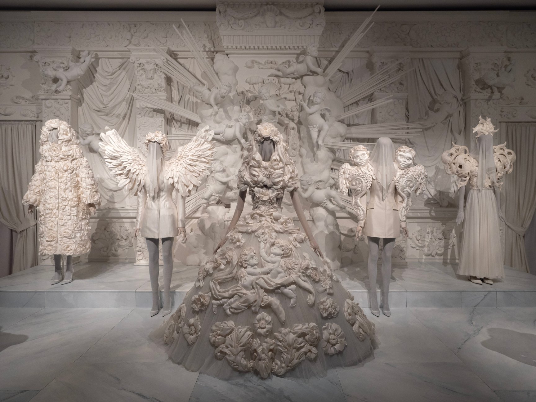 会場では貴重なアルタ モーダのピースが10の部屋に分かれて展示されています。キュレーターを務めるのは、数々のラグジュアリーブランドのエキシビションを手掛けたフロランス・ミュラー。レセプション前に行われたプレスカンファレンスに登壇したミュラーは、「これまでのファッションのエキシビションと比べても、イタリアを拠点にイタリアの都市にインスパイアされコレクションを発表し、かつ2人のデザイナーが創業から現在までクリエイティブの指揮をとっているという事実は特筆すべき点でしょう。このエキシビションを通して、イタリアの伝統やノウハウ、アルチザンに基づく素晴らしくパワフルなクリエイションをアルタ モーダのピースから直に感じ取ってほしい」と語ります。