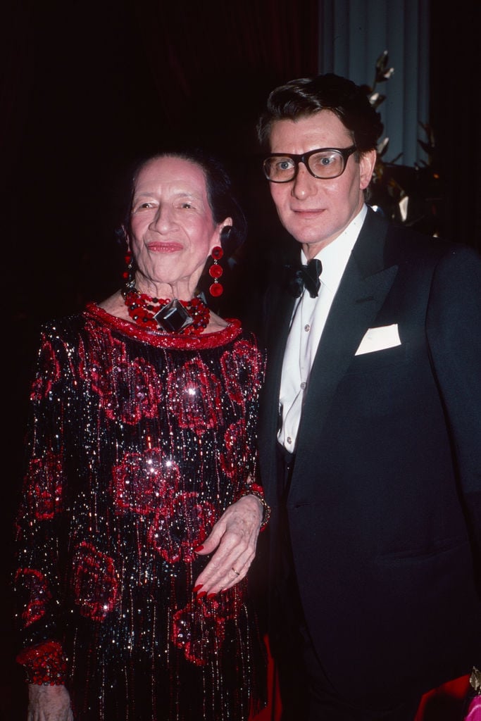 ダイアナ・ヴリーランドとイヴ・サンローラン(メトロポリタン美術館での回顧展のオープニングにて、1983年12月撮影)