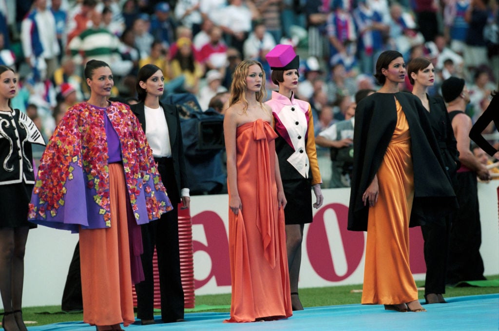 1998年のサッカーW杯フランス大会 閉会式で行われた、イヴ・サンローランのファッションショーの様子