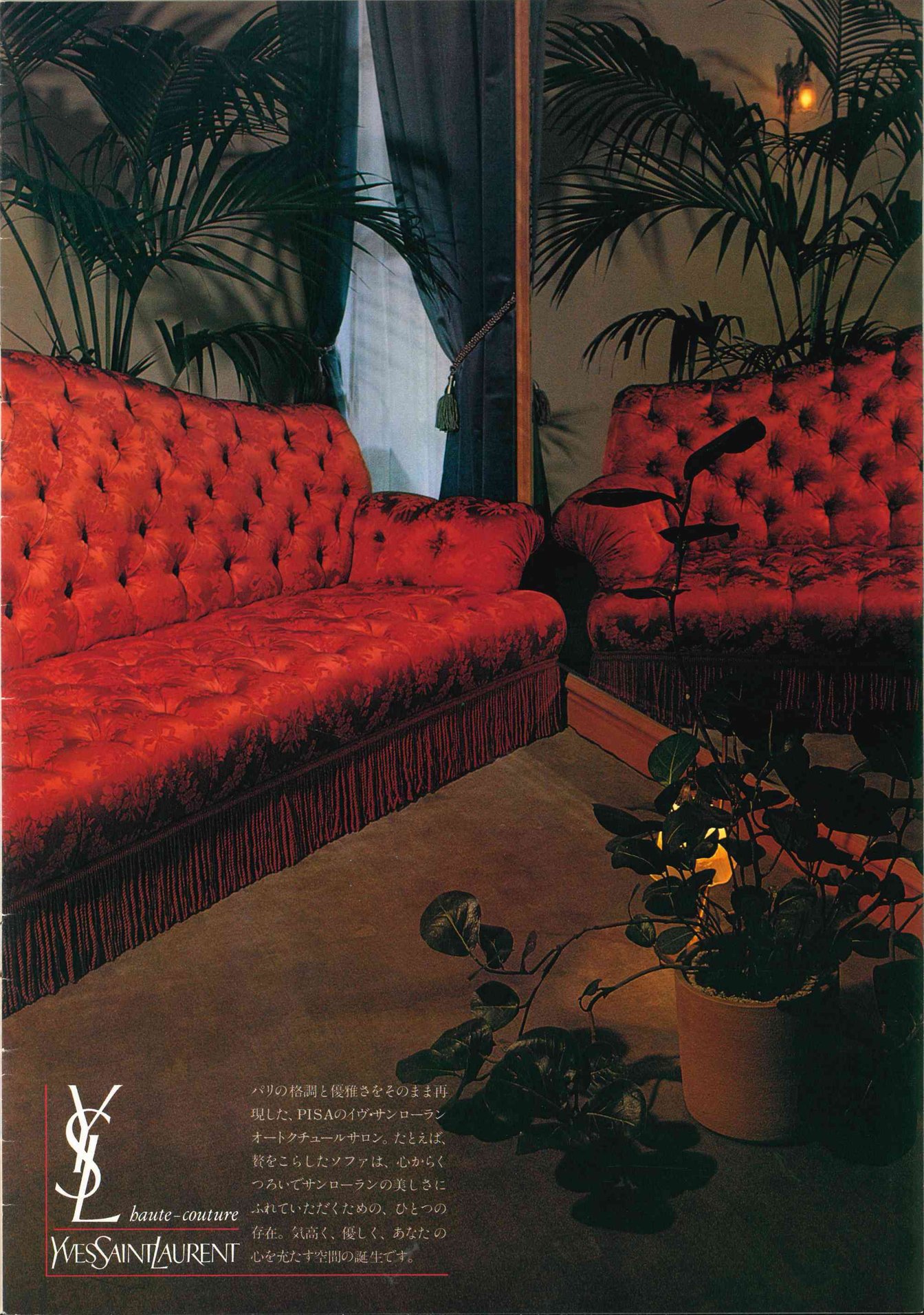 「西武PISAのサンローランのオートクチュールサロンは、その面積の3分の1をフィッティングルームが占めていました。そこには服を着た姿を全方位見られる三面鏡がありましたが、こうしたフィッティングルームは日本初だったのではないでしょうか。サロンで毎回開催していたショー用の椅子もパリのサロンと同じものを輸入し、優雅な雰囲気を創り上げました」。