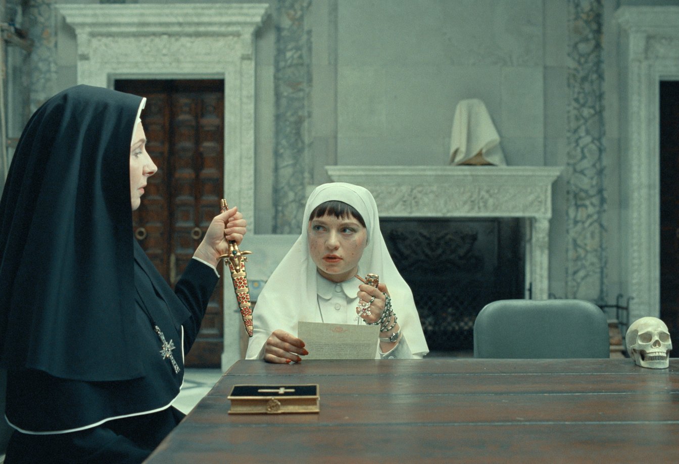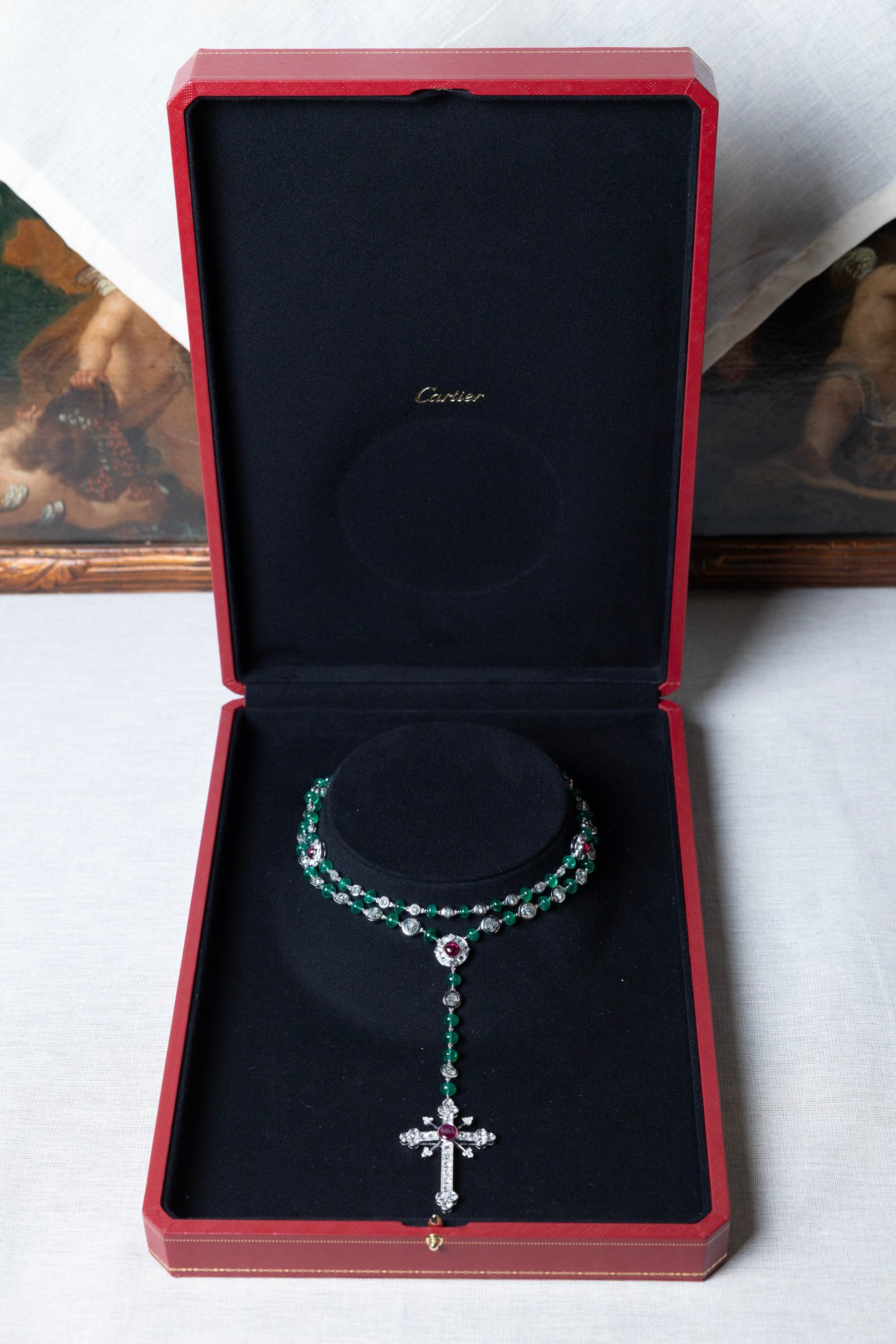 リーズルの真っ白な修道女の衣装に鮮やかに映えるのはカルティエが1880年頃に製作したロザリオ。現在は「カルティエ コレクション」に収蔵されているネックレスに魅了されたウェス・アンダーソンがその熱意をカルティエに伝えたことで実現したそうです。