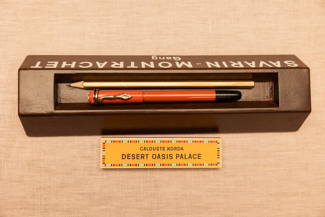 ひとつは1950年代のモンブランのアイコン筆記具「マイスターシュテュック」(ドイツ語で「傑作」の意)。ザ・ザがリーズルに後継人になるよう打診する際、サインのために用意される万年筆がマイスターシュテュックです。