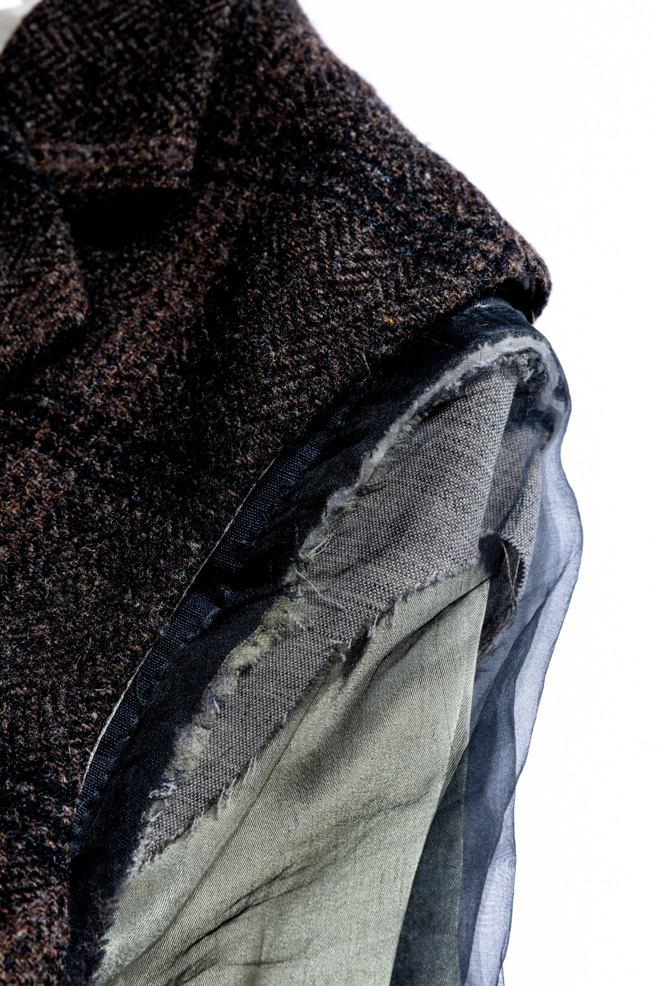 また、着る人によって変化する余地を持った服を理想としており、"未完成且つ、危なっかしい服"がブランドらしさを表現していく上で重要なポイントだという。2019年秋冬コレクションでは、裾を織り上げてショート丈でも着用できるノースリーブコートを発表。スタイリングによって様々な着こなしができるコートは、正に"変化する余地"を楽しむことのできる1着となっている。